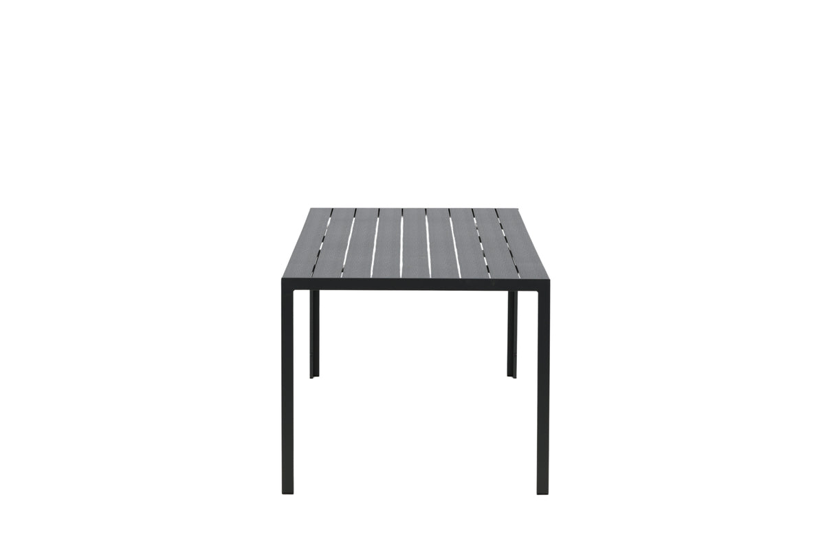 Smart, snyggt och slitstarkt - ett rektangulärt matbord med alla rätt helt enkelt! Break har raka former i klassisk nordisk design med en bordsskiva i svart polywood och bordsben i aluminium. Materialen är både hållbara och lätta i vikt så du enkelt kan flytta runt matbordet om det behövs. Gör dig redo före utelivet i sommar och njut av måltider utomhus! Skötselråd: Utemöbler i aluminium och rostfritt stål bör rengöras regelbundet med vatten och mild tvål. Skölj alltid noggrant med rikligt med vatten, något som blir extra viktigt om möblerna är placerade på ett havsnära avstånd där salt kan transporteras via luften.