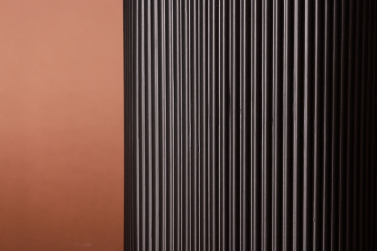 Sidobordet från serien Lenox är lika praktiskt som iögonfallande! Den cylinderformade utformningen med ribbad design skapar ett robust och stadigt intryck till rummet. Toppskivan är slät och elegant i en matt svart kulör. Lika användbar som avlastningsyta, som piedestal eller sidobord. Pryd med vackra ljusstakar eller dekorationer och höj stilnivån i ditt hem till nästa nivå!