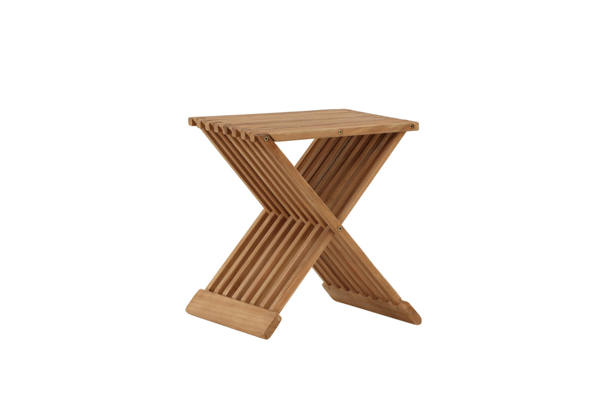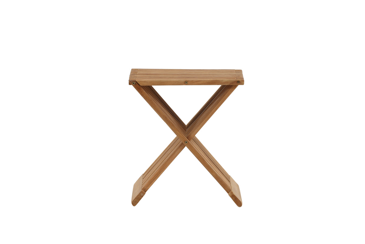 Ett nätt sidobord i teak som med sin klassiska design passar hemma hos de flesta! Ett praktiskt sidobord du kan placera jämte din loungegrupp eller dina utemöbler för extra bordsyta. Bordet är enkelt att flytta runt för att passa in där just du behöver det. Skötselråd: Våra teakmöbler produceras av certifierad teak som är odlad för ändamålet och inte skövlade från ömtålig regnskog. Som ett av de tåligaste träslagen innehåller teak mycket olja som sedvanligt behövs för att inte materialet ska spricka. Eftersom träslaget innehåller naturligt mycket behöver inte möblerna impregneras lika ofta. Vill du däremot behålla färgen behöver du behandla möblerna med en särskild olja. Se till att ytan är ordentligt avtorkad så att damm och smuts inte fastnar under oljan. Vi rekommenderar att du oljar in dina möbler före användandet, första gången bör även bordsskivans undersida impregneras för att minska risken för sprickbildning, detta eftersom att den sida av bordet som blivit inoljad sväller litegrann. Det levande materialet ger att variationer i både färg och ådring, som i sin tur gör varje möbel unik. Torka upp vätska som spills – direkt. När möblerna står ute på sommaren utsätts de för både väder och vind vilket i sin tur kan framkalla svartmögel.