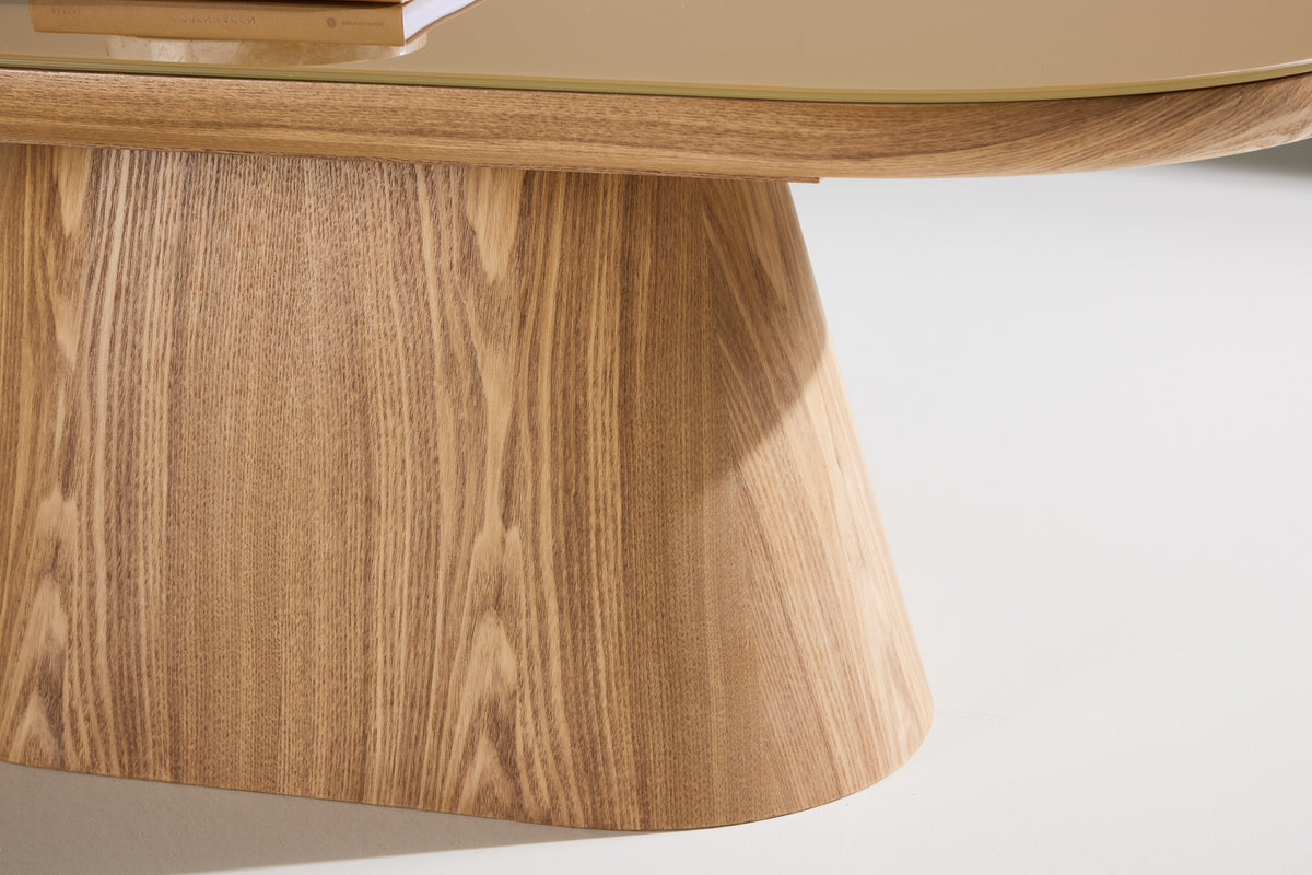 Castor är utformat för att vara både funktionellt och visuellt tilltalande. Den ovala formen erbjuder en rymlig yta för allt från kaffekoppar och böcker till dekorativa föremål, samtidigt som den rundade designen gör bordet säkert och lätt att placera i olika typer av rum.