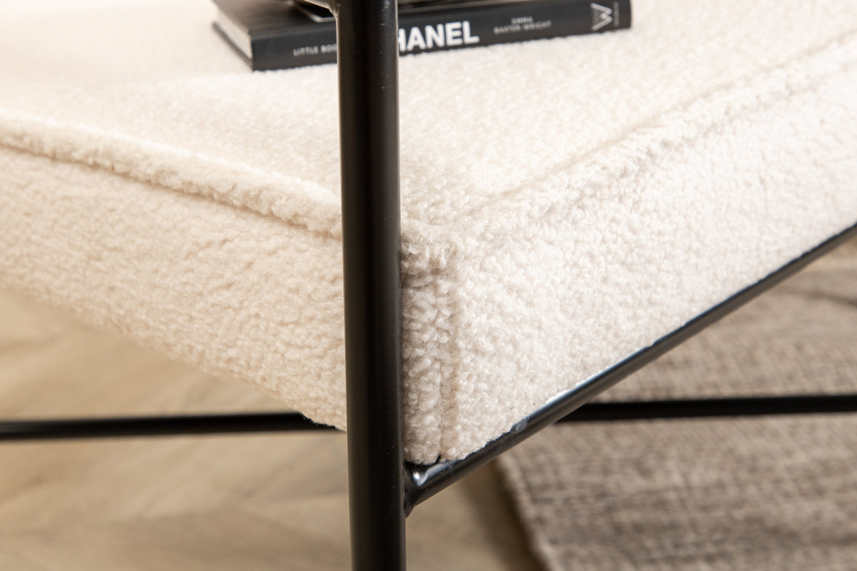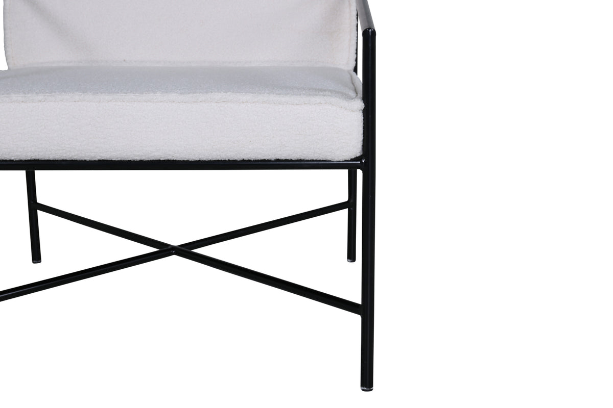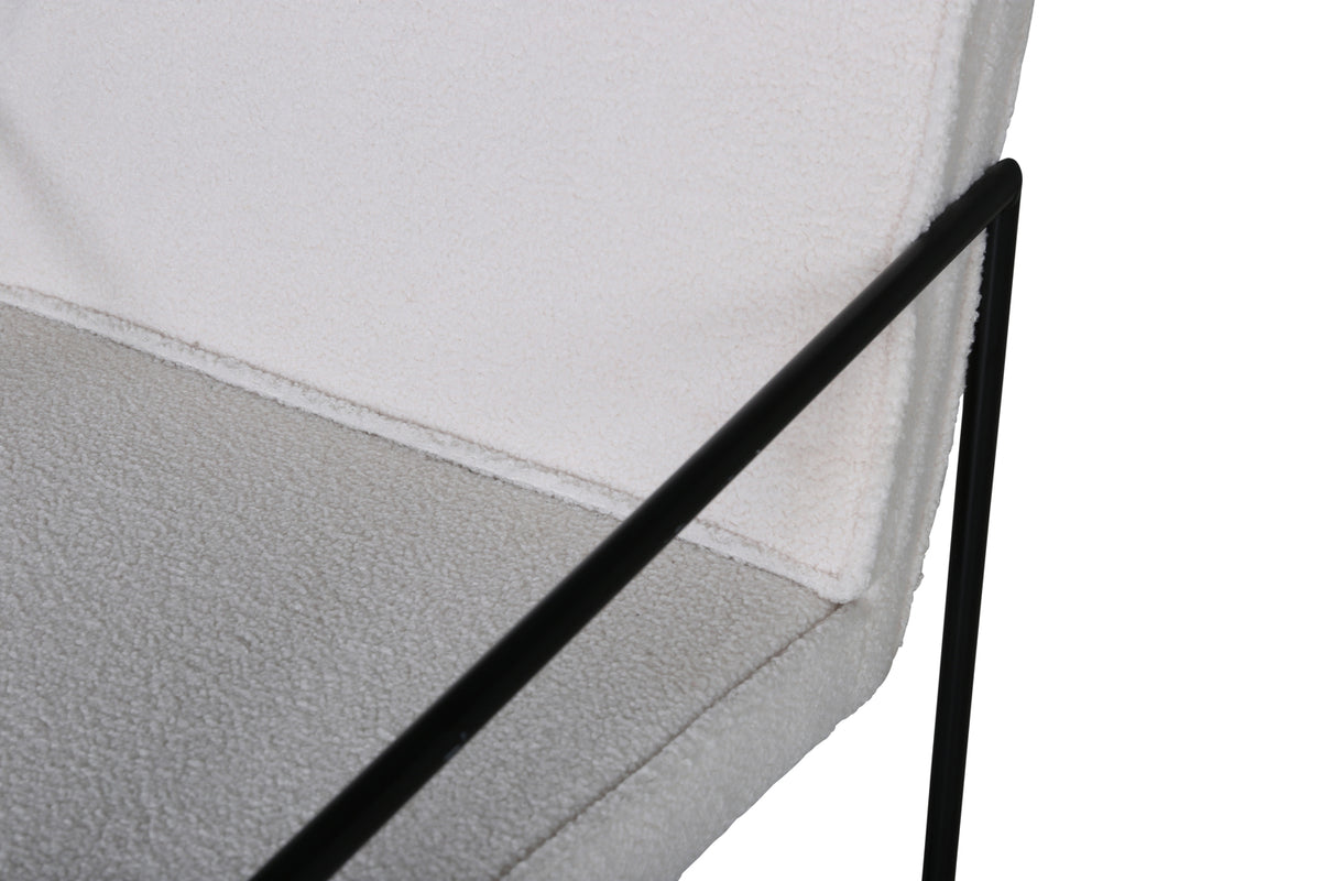 Höj stilnivån i vardagsrummet med en modern fåtölj från serien Rakel! Designen är helt enligt trenderna med en tidlös skandinavisk minimalism kombinerat med hög komfort. Dynan i lurvig vit teddyklädsel har optimal tjocklek och lutning för bästa komfort när du önskar koppla av. Den smala stommen är svetsad i svart pulverlackerad metall och bidrar till ett modemedvetet helhetsintryck. Placera solitär som stilikon eller tillsammans med soffgruppen i vardagsrummet.