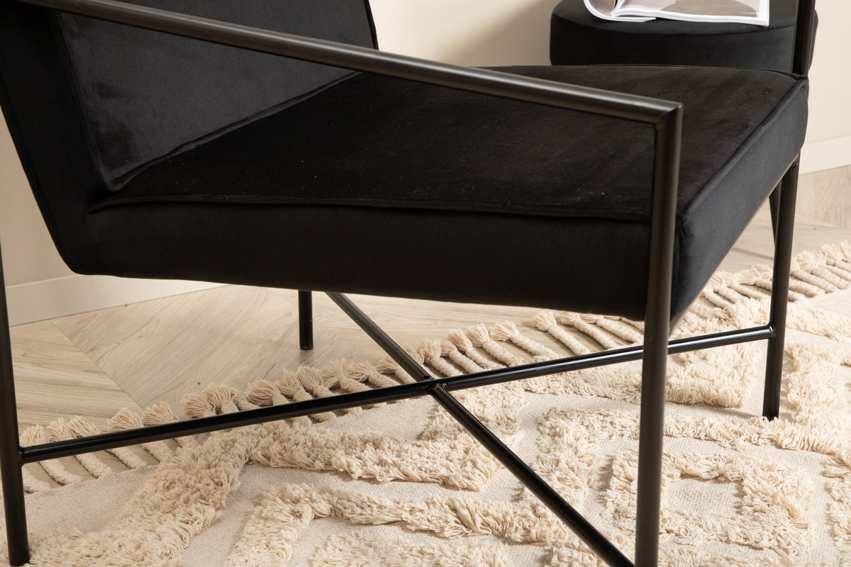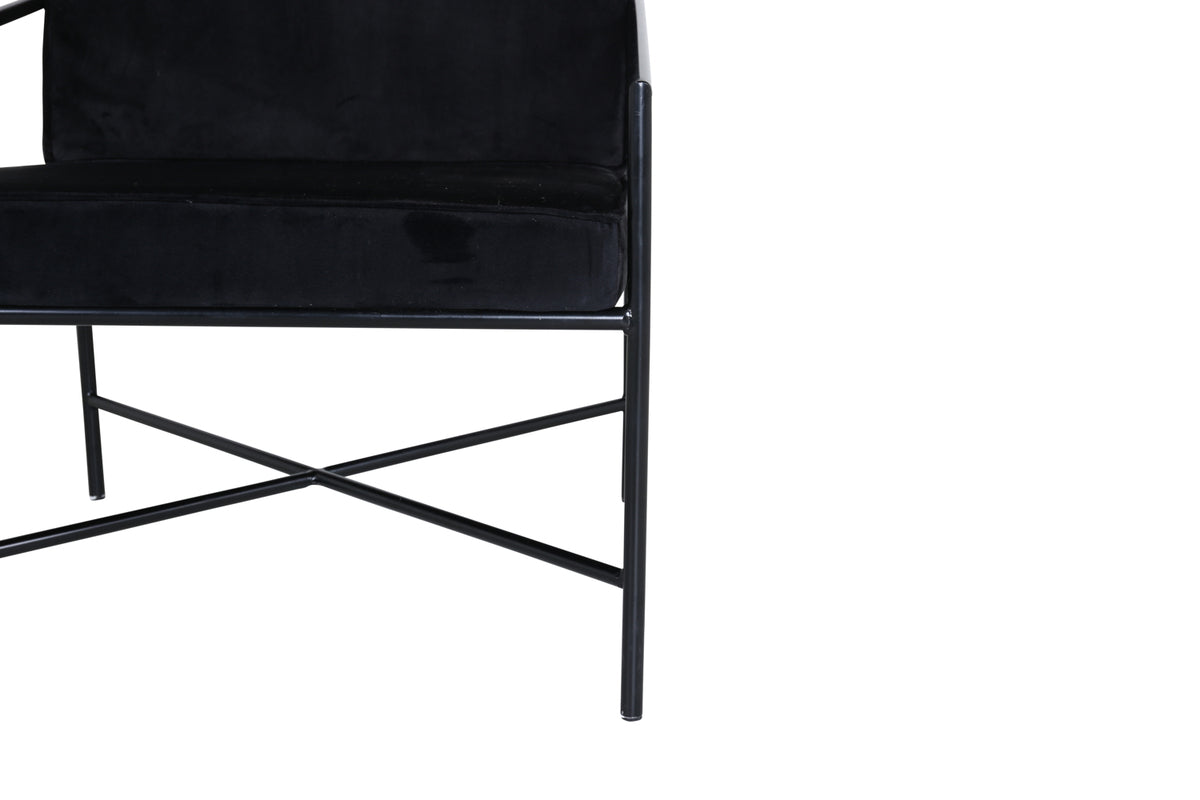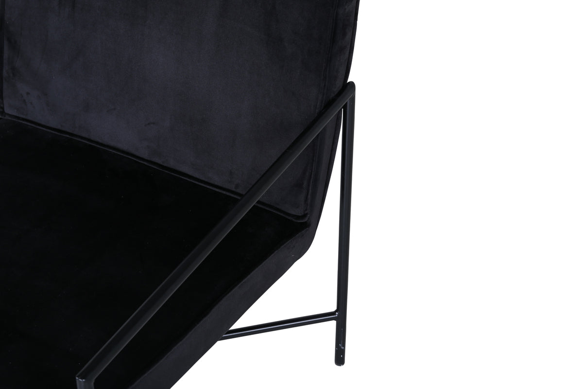 Skapa ett modemedvetet helhetsintryck i vardagsrummet med en stilikon från serien Rakel! Designen är helt enligt trenderna med en tidlös skandinavisk minimalism kombinerat med hög komfort. Dynan i kaxig sammetslen svart klädsel har optimal tjocklek och lutning för bästa komfort när du önskar koppla av. Den smala stommen är svetsad i svart pulverlackerad metall och bidrar till ett modemedvetet helhetsintryck. Placera solitär eller tillsammans med soffgruppen i vardagsrummet.