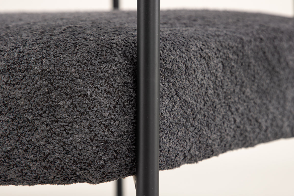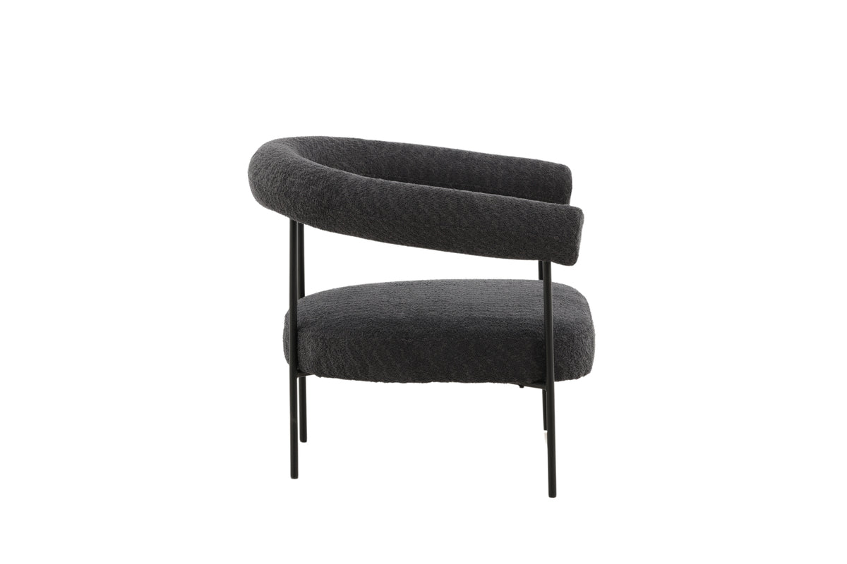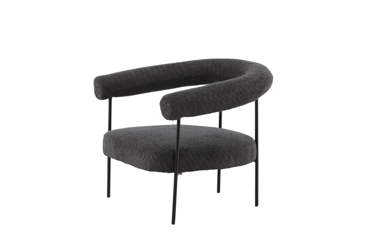 Ta inredningen till nästa nivå med fåtöljen Hökåsen från Josefin Lustigs kollektion. Med sina inbjudande nordiska former skapar denna fåtölj ett inbjudande och lyxigt intryck. Fåtöljen är formad likt en halvmåne och har en bekväm och rymlig sits, klädd i ett trendigt grått boucletyg. Ramkonstruktionen är minimalistisk i svart stål och den enkla designen ger en luftig känsla. Placera brevid soffgruppen eller varför inte ensam som en vacker inredningsdetalj.