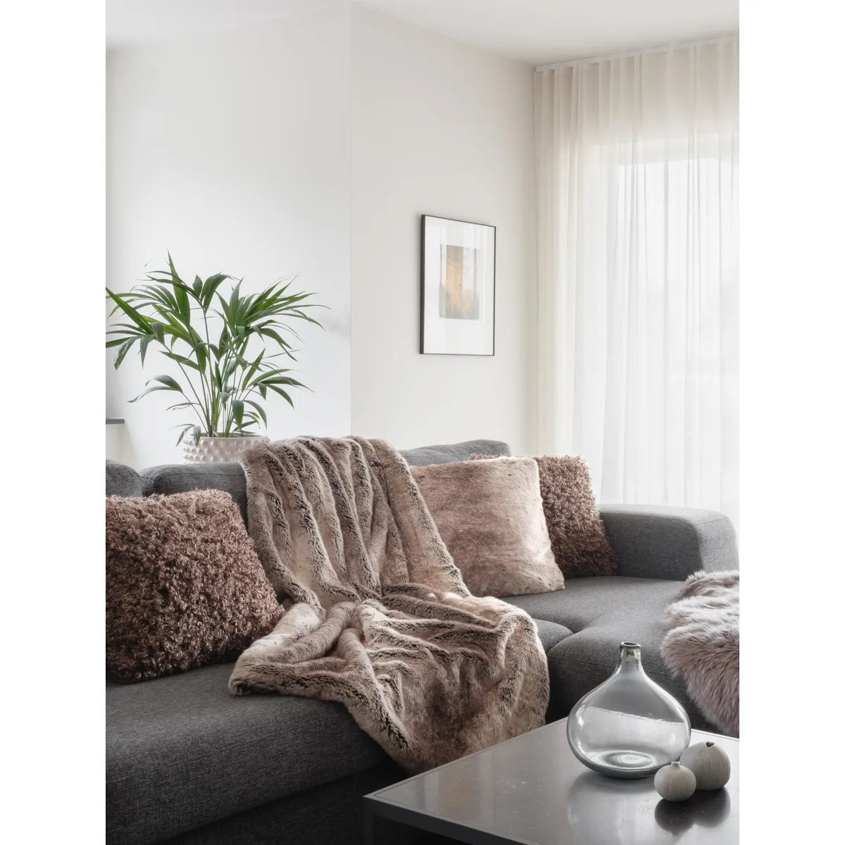 Mysig filt i brungrå nyanser inspirerad av naturen. Den matchar bra med många olika färger.