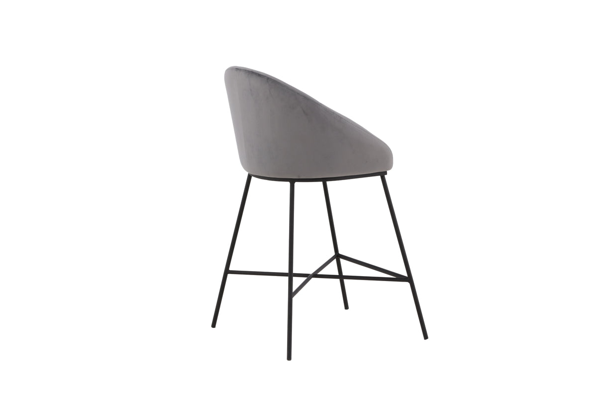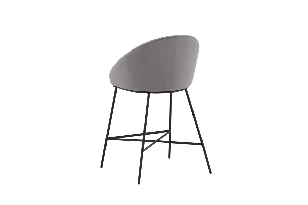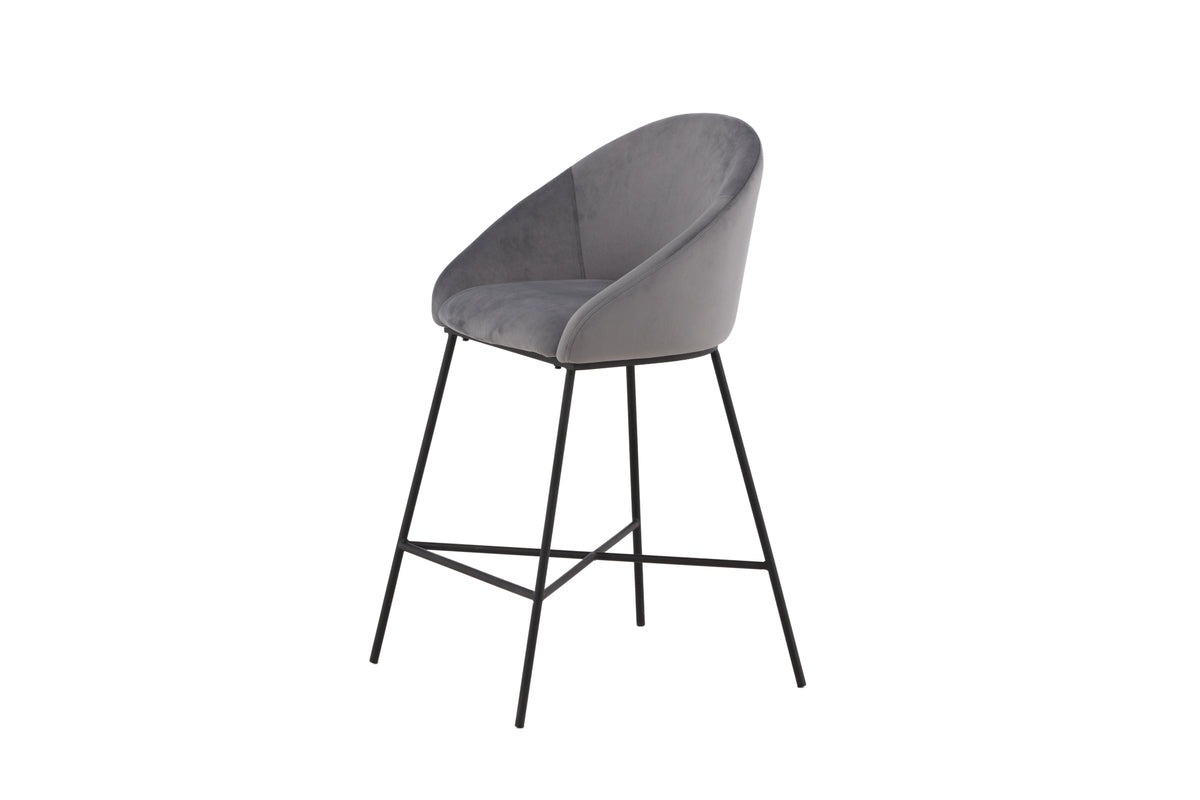 En modern barstol från serien Velvet i stilren grå kulör! Den här barstolen tillhör Venture Home kollektionen och har en helklädd design med lätt rundad rygg och sits i mjukt sammetstyg och minimalistiska ben i svart pulverlackerad metall – garanterat lika bekväm som iögonfallande. Möblera kring det höga matbordet eller vid bardisken i köket och förläng trivsamma stunder tillsammans!