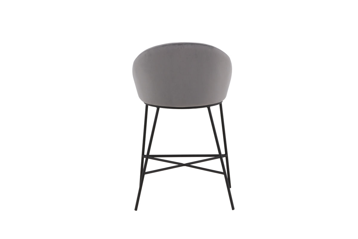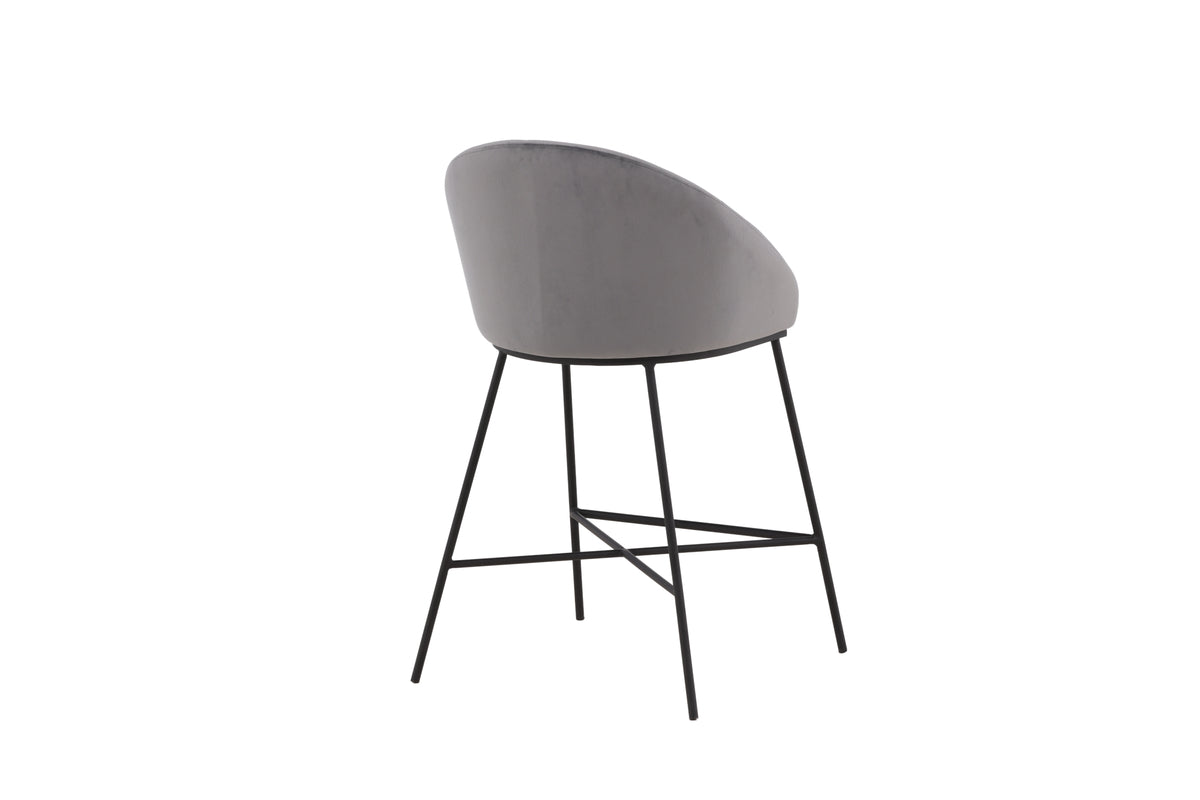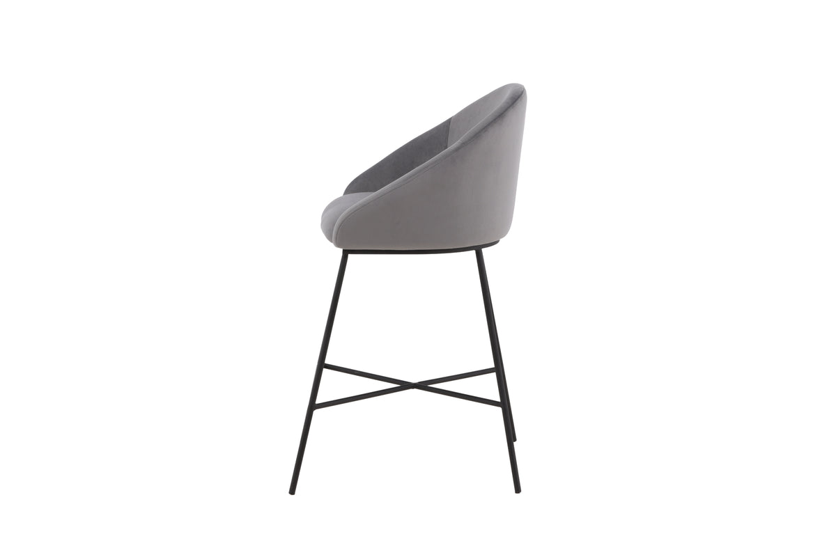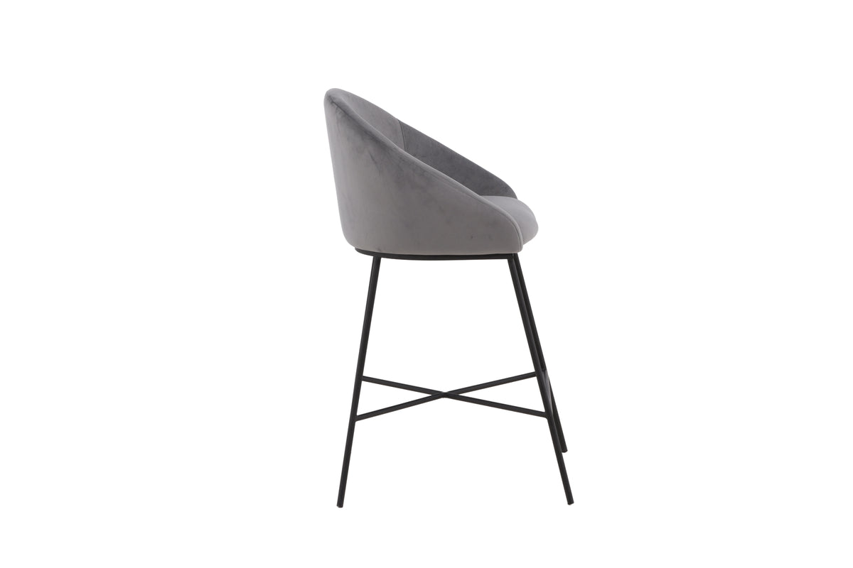 En modern barstol från serien Velvet i stilren grå kulör! Den här barstolen tillhör Venture Home kollektionen och har en helklädd design med lätt rundad rygg och sits i mjukt sammetstyg och minimalistiska ben i svart pulverlackerad metall – garanterat lika bekväm som iögonfallande. Möblera kring det höga matbordet eller vid bardisken i köket och förläng trivsamma stunder tillsammans!