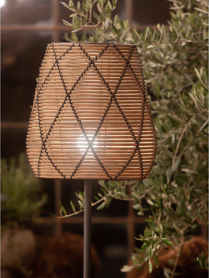 Bordslampa Agnar inklusive skärm Lollo i natur/svart, som båda är anpassade för utomhusbruk. Foten har en E27 lamphållare för ljuskälla med max 18W effekt, vi rekommenderar ljuskällan 1806404 Elect Led Filament Edison Clear 64mm. Över ljuskällan och lamphållaren sitter ett transparent plastlock samt en packning som skyddar mot väta. Lampskärmen har en flätad struktur som skapar ett vackert ljusspel, och är tillverkad i konstrotting som är ett vädertåligt material. Skärmen sätts fast i lampfoten med hjälp av ett specialfäste. Kabellängd 200cm.