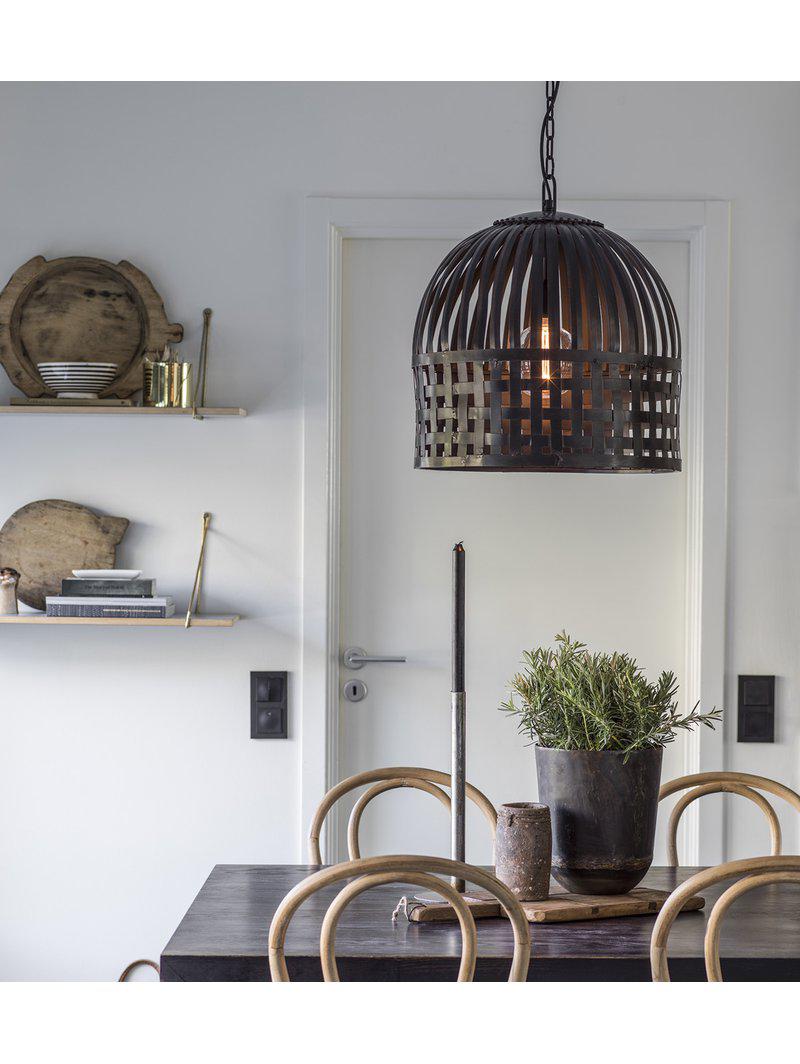 Taklampa Sheffield med flätade metallremsor som silar ljuset vackert. E27 lamphållare, max 40W. 100cm matchande kedja och plastkabel, takkrok för upphägning. Takkontakten köpes separat. 46cm i diameter, höjd 46cm.