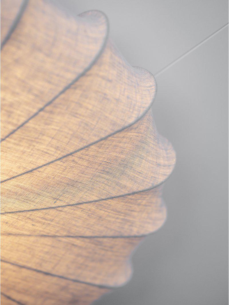 Snygg och stilren plafond i ett underbart linnetyg. Taklampan kräver 3 stycken klotlampor med E27 sockel, max 60w. Takkontakt och ljuskälla köpes separat.