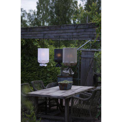 Låt vardagsrummet flytta ut! Skapa en härlig och mysig utemiljö med våra Outdoor takskärmar. Passar lika bra i uterummet som på terrassen. Denna fina takskärm är gjord i ett värdertåligt tyg och har en stomme i galvaniserat stål, som klarar att hänga ute oavsett väder. Takskärmen säljs utan takupphänge men för att göra den komplett, köpt till Flex out takupphänge.