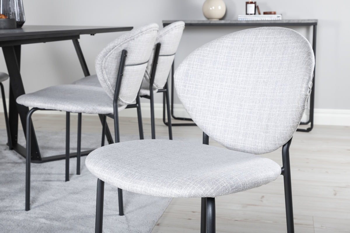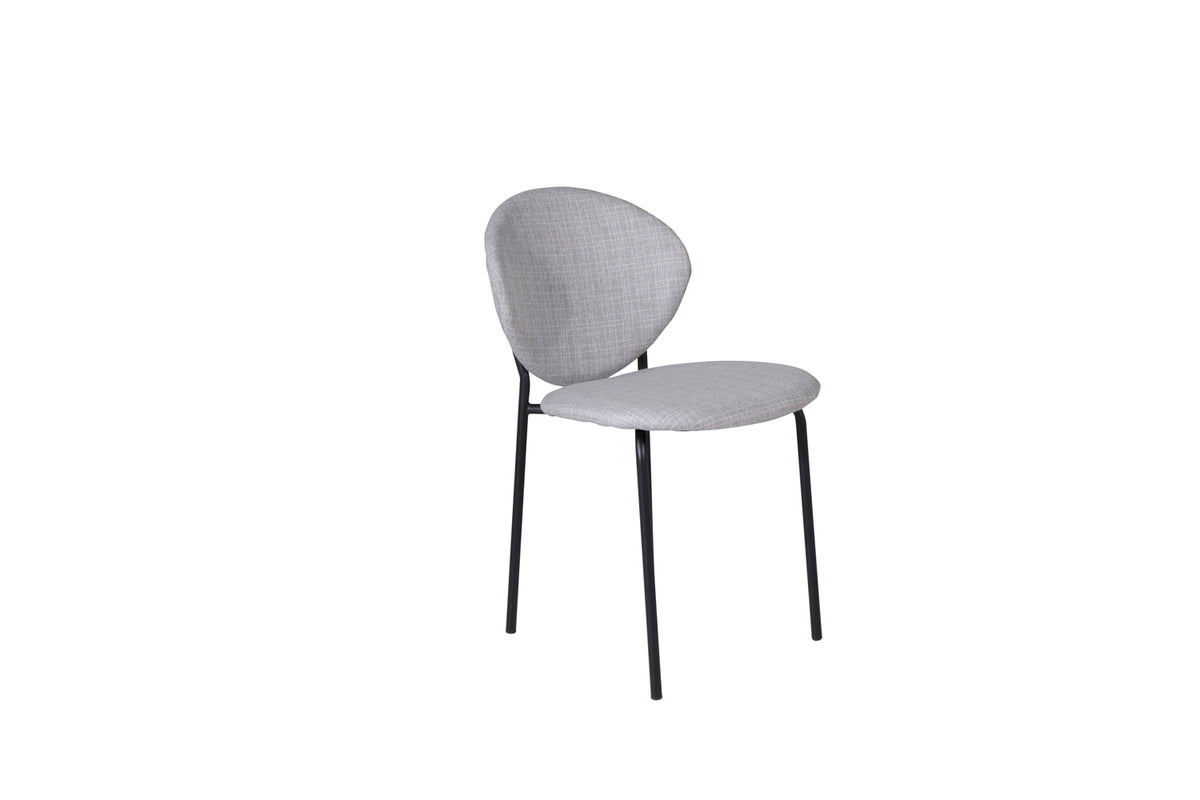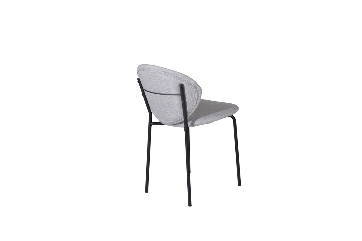 Tidlös matstol i går kulör och minimalistisk design från serien Vault! Den här läckra matstolen har en stomme och ben i svart pulverlackerad metall och en rundad rygg. Rygg och sits är i stoppad grått polyestertyg. Inred ditt hem med bekväma stolar som är lika stilrena som praktiska med sin nätta storlek! Lättare montering krävs.