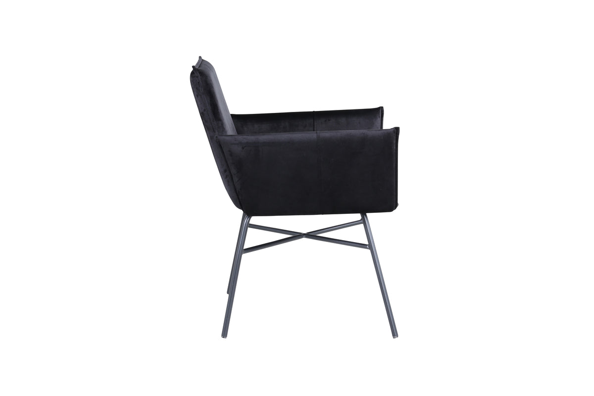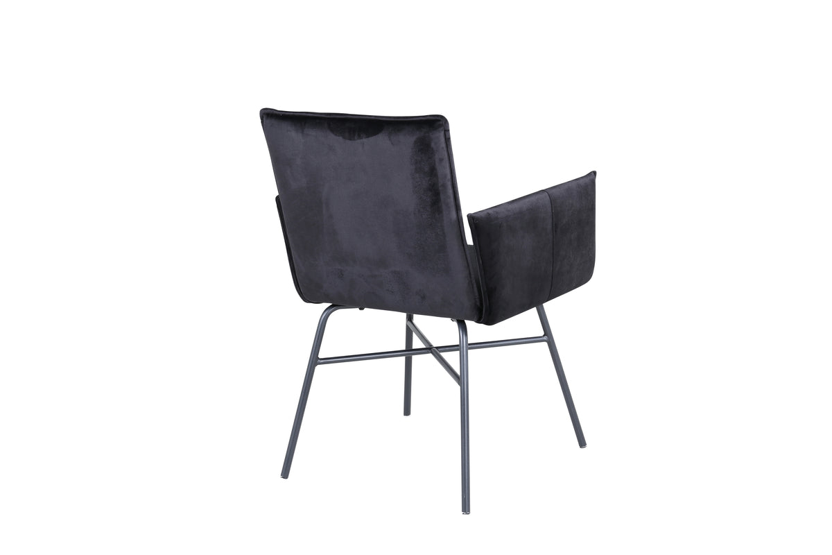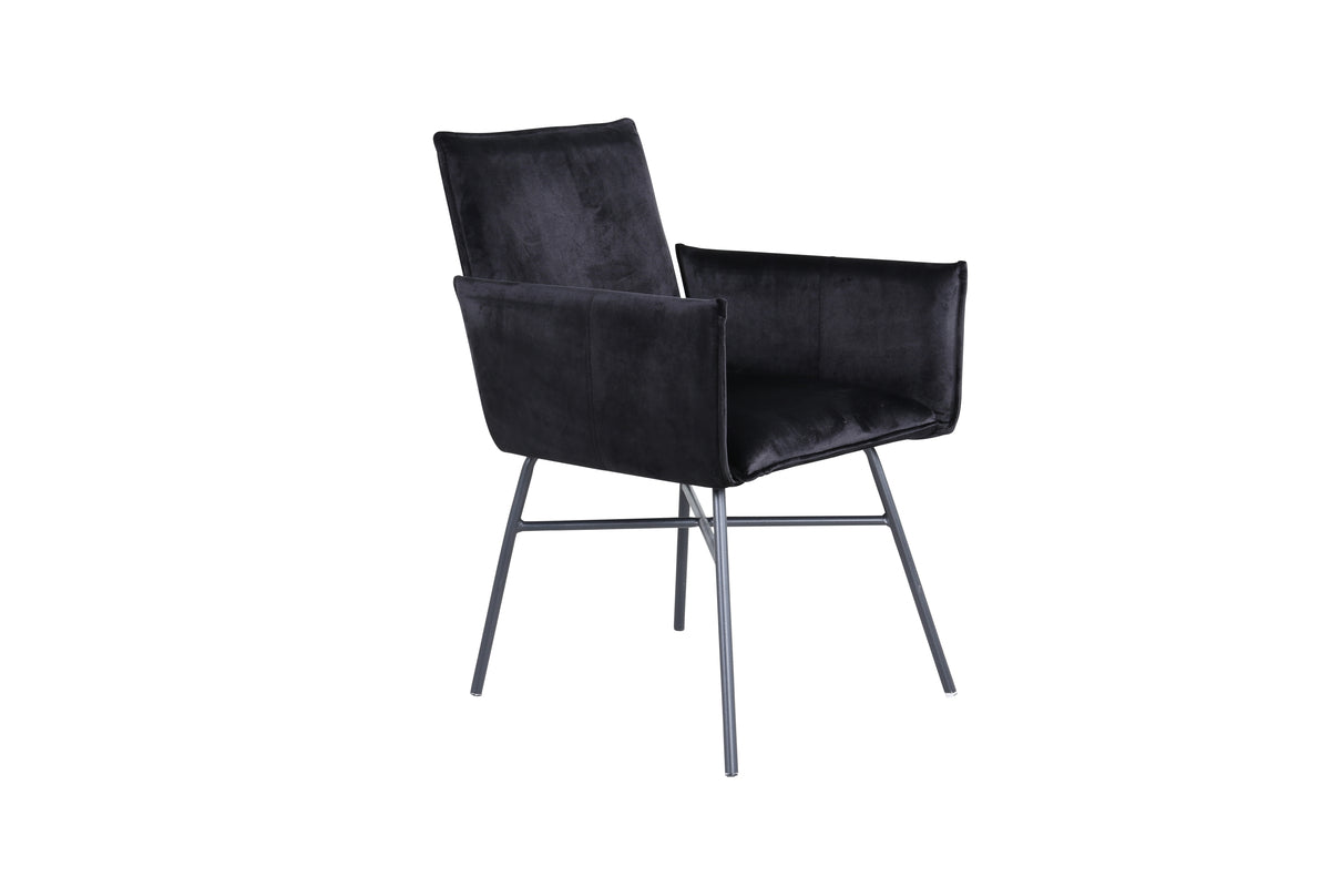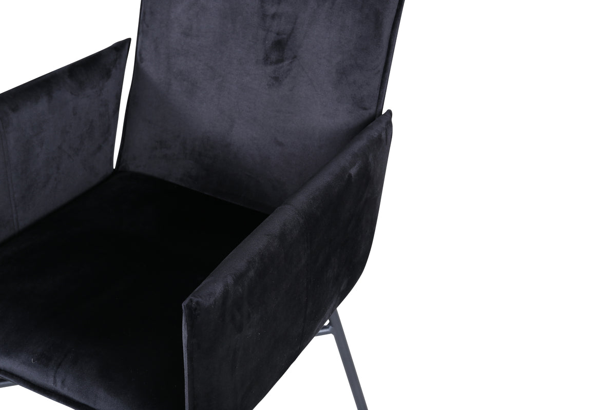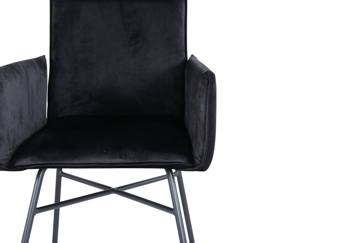 Skapa ett blickfång som imponerar med matstolar från serien Petra! Den genomtänkta designen, raka nordiska formerna och stadiga utformning ger ett modernt och personligt intryck till rummet. Stolen har en svart rygg och sits i mjuk sammet och polyesterlinne som bidrar till god komfort. Stolsbenen är dekorativa smala, tillverkade i järn som blir till en fin detalj. Möblera hemmets hjärta modernt, bekvämt och praktiskt! Lättare montering krävs. Skötselråd: Sammet har en tendens till att få tryckmärken när luggen lägger sig ner. Avtrycken kan göra att tyget ser slitet ut, vilket här helt normalt för den här typen av material. Beroende på hur ljuset faller kan tyget skifta i flertalet olika nyanser.