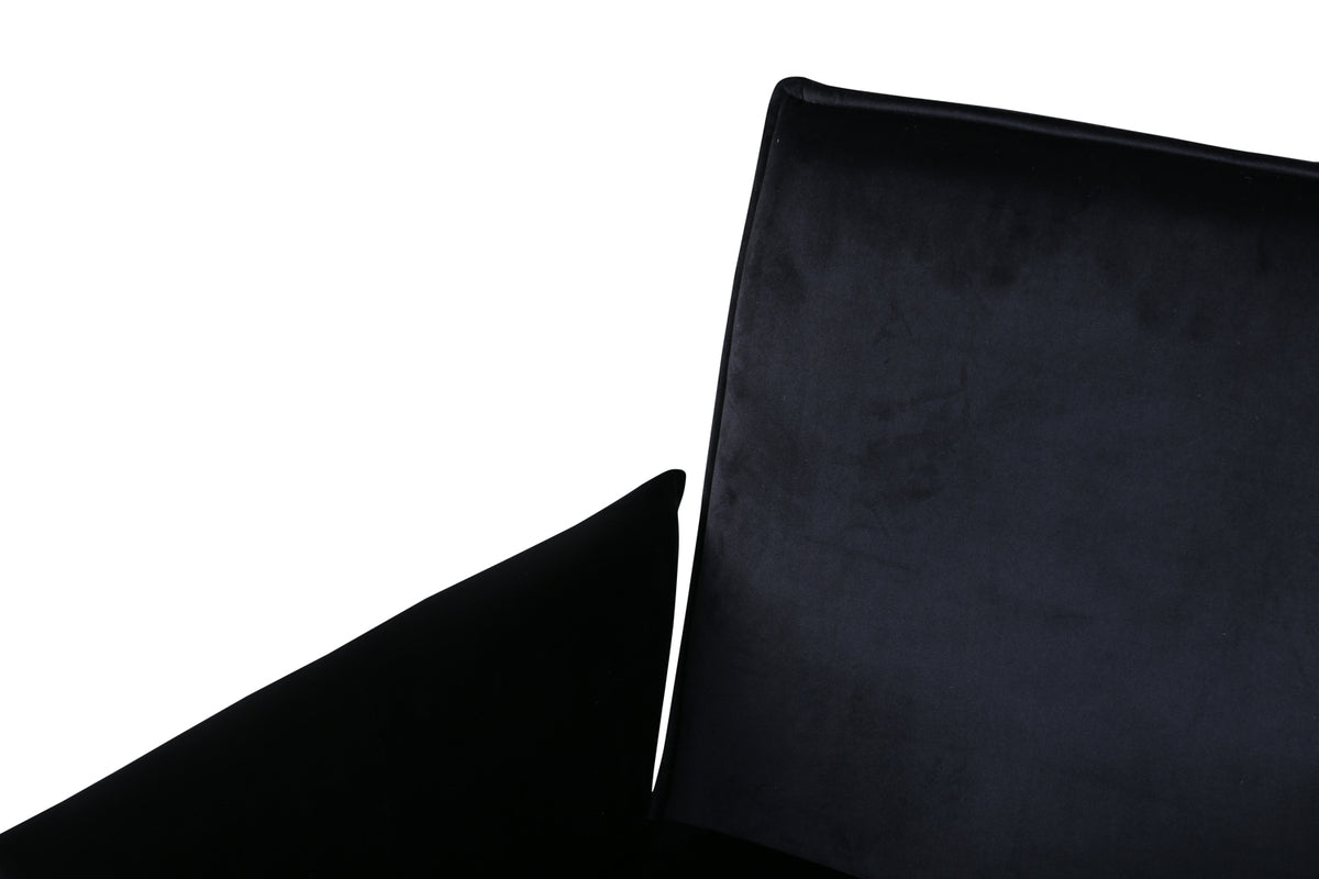 Petra - En modern stolsdröm som imponerar med både bekvämlighet och stil! Den genomtänkta designen, raka nordiska formerna och stadiga utformning ger ett modernt och personligt intryck till rummet. Stolen har en svart rygg och sits i mjuk sammet och polyesterlinne som bidrar till god komfort. Stolsbenen är dekorativa smala, tillverkade i kopparfärgat järn som blir till en fin detalj. Möblera hemmets hjärta modernt, bekvämt och praktiskt! Lättare montering krävs. Skötselråd: Sammet har en tendens till att få tryckmärken när luggen lägger sig ner. Avtrycken kan göra att tyget ser slitet ut, vilket här helt normalt för den här typen av material. Beroende på hur ljuset faller kan tyget skifta i flertalet olika nyanser.