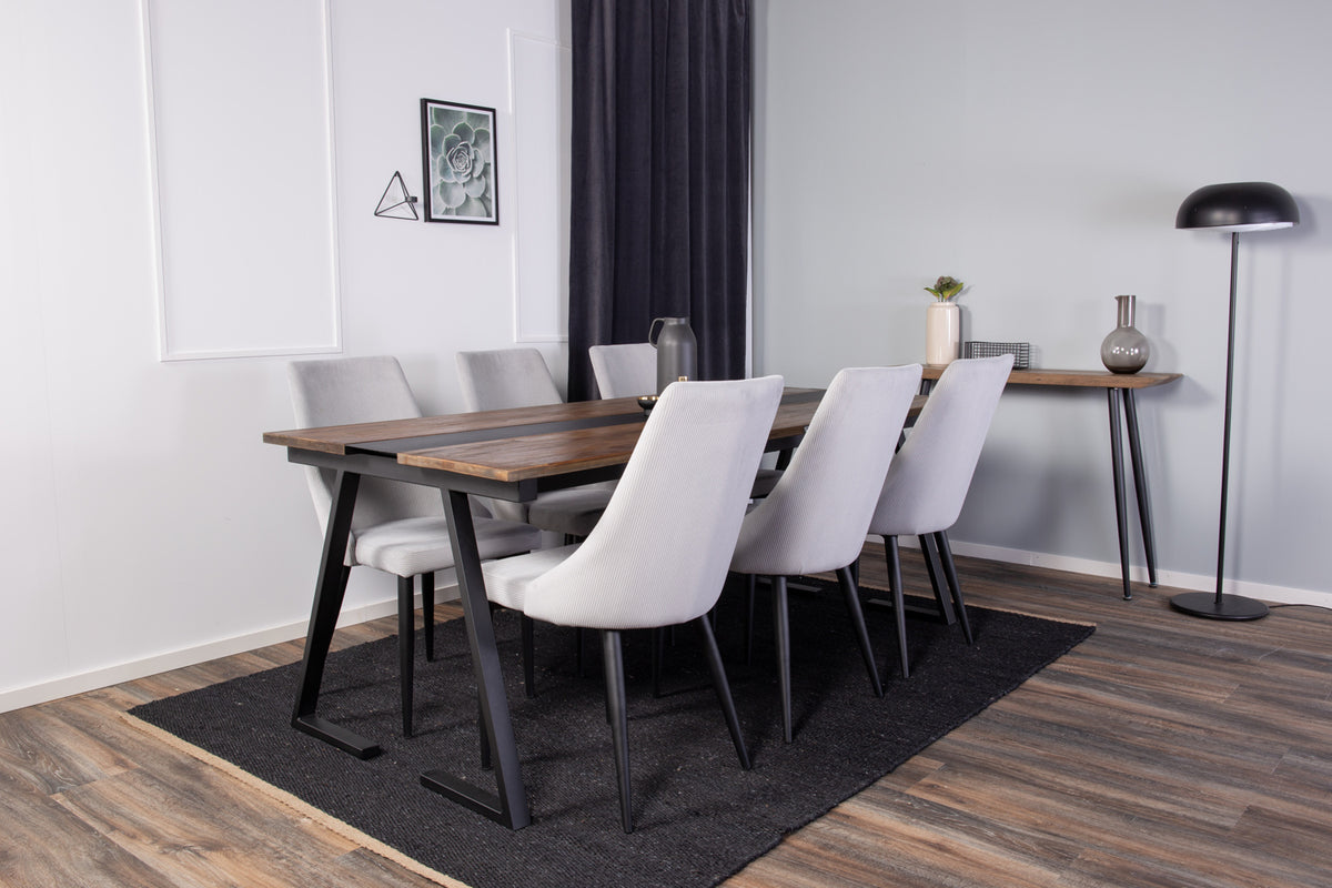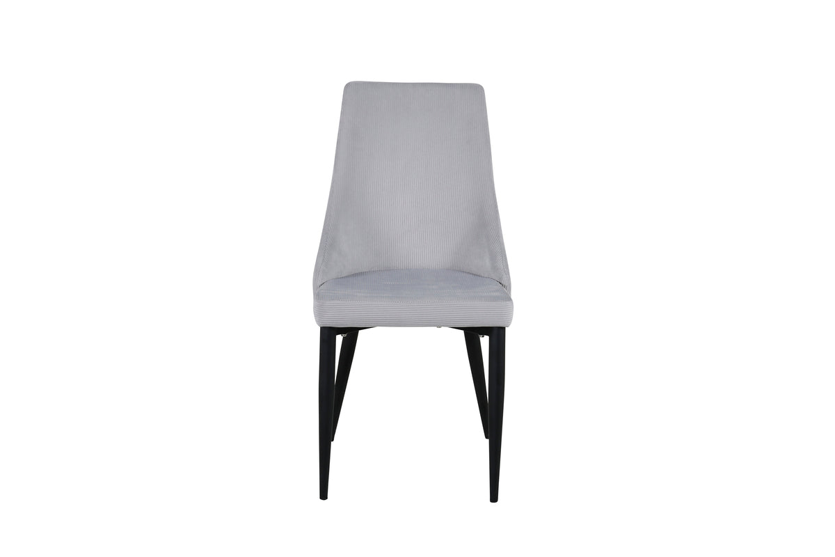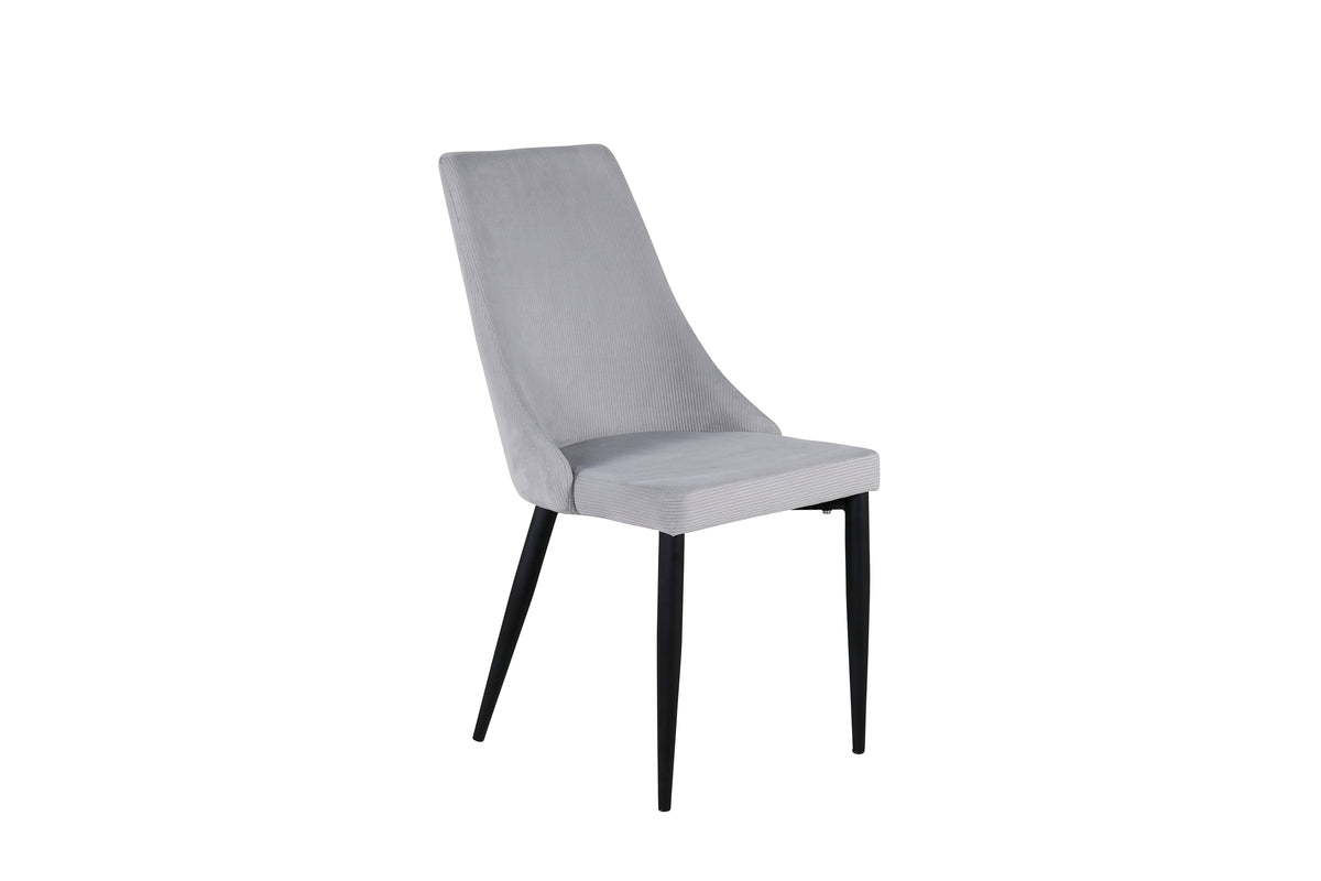 En stilren matstol i behaglig grå kulör som aldrig går ur tiden! Matstol Leone har en helklädd klassisk design, ben i svart pulverlackerad metall och en hög rygg och sits med mjuk stoppning i läckert ljusgrått manchesterstyg. Lättare montering krävs. Här sitter du och dina gäster bekvämt länge och njuter av trivsamma måltider! Skötselråd: Använd textilspray för att impregnera textilen innan du börjar använda den, det kommer även göra att eventuell smuts och fläckar blir lättare att ta bort framöver. Ta bort fläckar med en gång, gnid inte utan försökt suga upp varsamt med en trasa.
