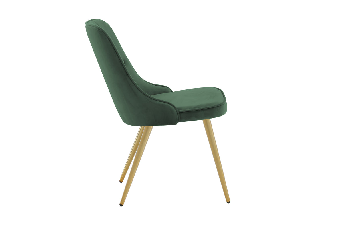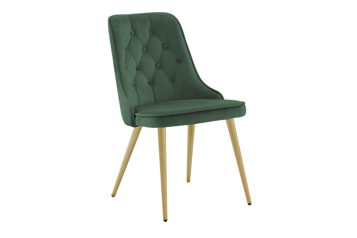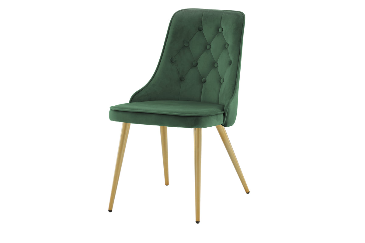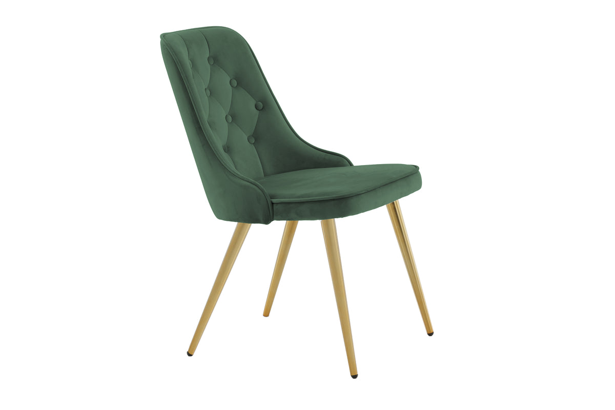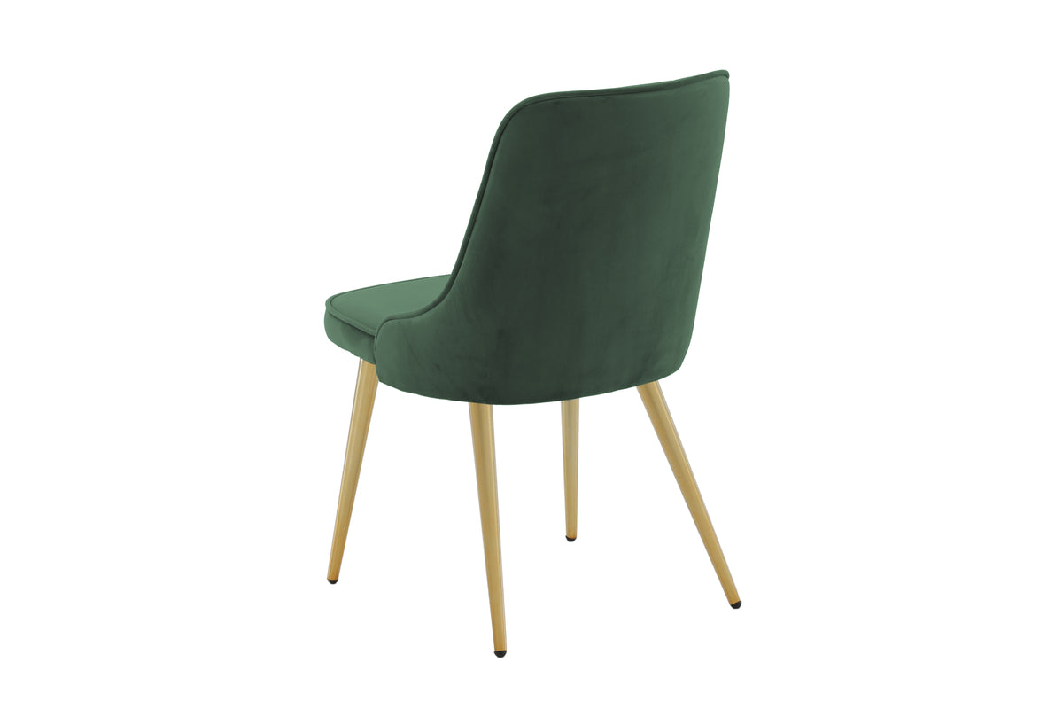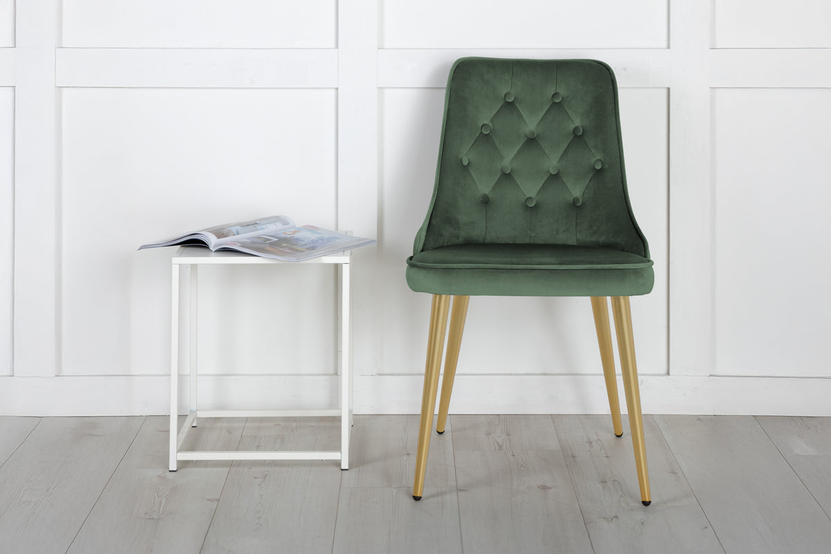 Skapa en pampig atmosfär i ditt hem med ett par sköna skogsgröna matstolar från serien Velvet Lyx. Stolen har en helklädd design, ben i mässingfolierad metall samt rundad rygg och sits i läckert grönt sammetstyg med mjuk stoppning och dekorativa knappar. Lika bekväm som iögonfallande! Lättare montering krävs. Skötselråd: Sammet har en tendens till att få tryckmärken när luggen lägger sig ner. Avtrycken kan göra att tyget ser slitet ut, vilket här helt normalt för den här typen av material. Beroende på hur ljuset faller kan tyget skifta i flertalet olika nyanser.