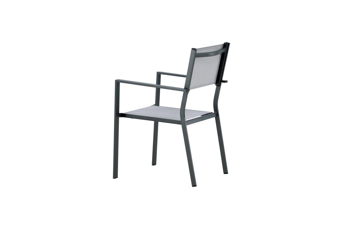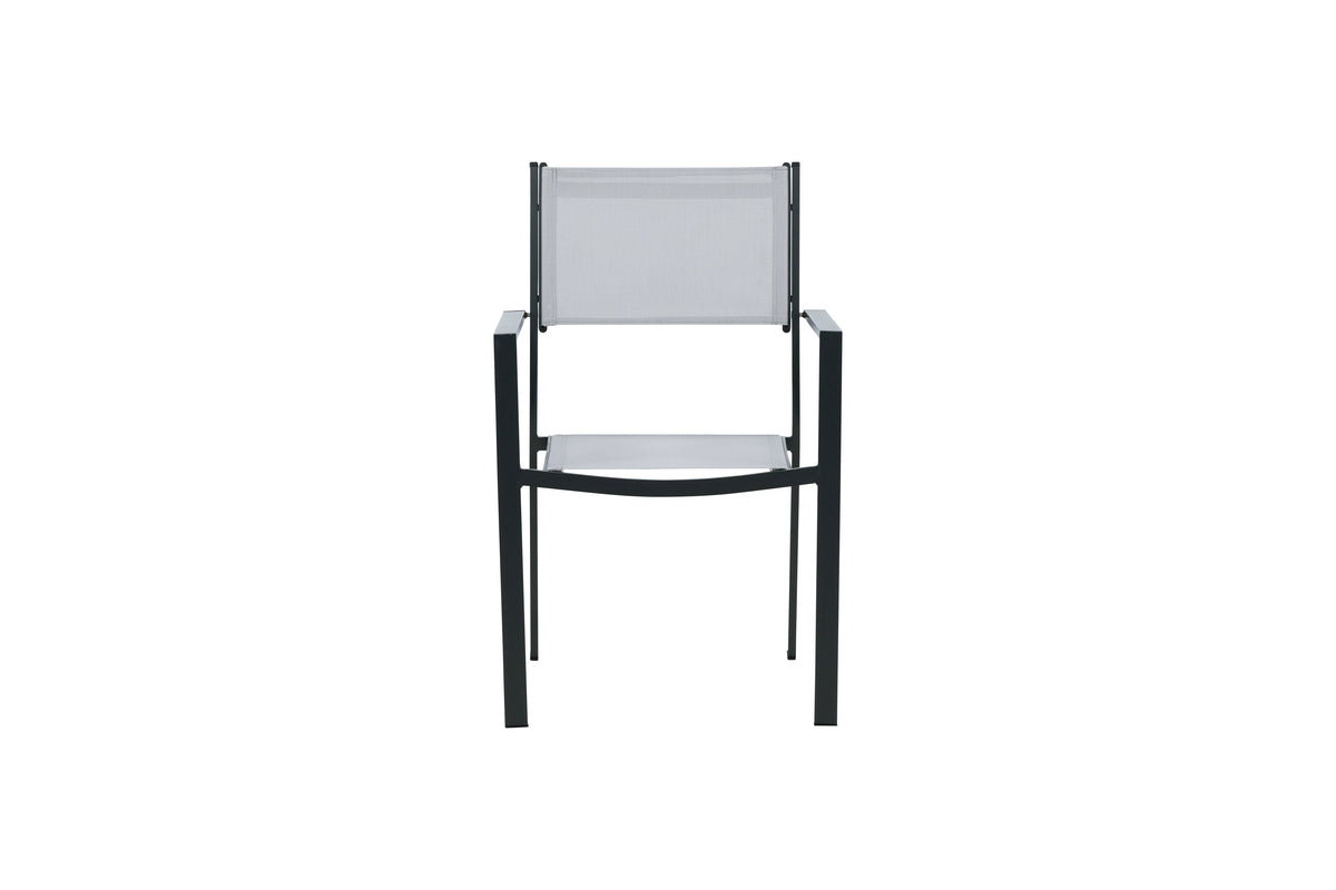 Copacabana i sin robusta och stilrena design gör sig alldeles ypperligt tillsammans med andra utemöbler. Dess svarta aluminiumkonstruktion och slitstarka grå sits i textilene ger dig en praktisk matstol som håller över tid. Den är stapelbar, för smidig förvaring. Njut av trivsamma måltider i sommar!