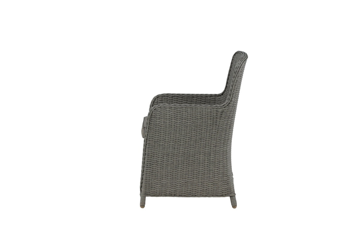 Skapa ett avkopplande blickfång på uteplatsen i sommar med den här matstolen från serien Wembley. Den stilrena designen och läckra grå kulören gör ett modernt intryck. Stolen är en riktig klassiker och går hem i de flesta hushåll. Med höga armstöd blir stolen bekväm att sitta i nära intill bordet. Sitt bekvämt och njut av härliga måltider utomhus! Skötselråd: Konstrotting är ett plastmaterial som passar alldeles utmärkt för vårt skandinaviska klimat. Materialet är UV-beständigt och tåler väder och vind. Att det är UV-beständigt gör att möblerna inte bleknas, däremot rekommenderar vi alltid att förvara möblerna under ett möbelskydd eller på annat vis torrt och svalt – för att förlänga livslängden.