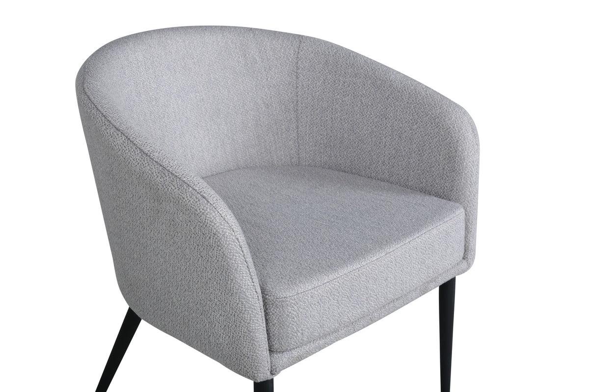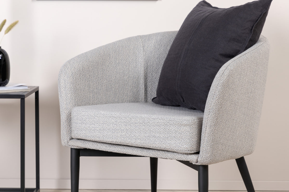 En modern fåtöljdröm från serien Fluffy i stilren grå kulör blir garanterat ett populärt tillskott i hemmet! Den här stolen har en helklädd design med lätt rundad rygg och sits i polyesterlinne och smala ben i svart järn – garanterat lika bekväm som iögonfallande. Möblera vardagsrummet inbjudande och trivsamt med en läcker stilikon njut av härlig avkoppling! Tips för Polyestertyg: Använd textilspray för att impregnera textilen innan du börjar använda den, det kommer även göra att eventuell smuts och fläckar blir lättare att ta bort framöver. Ta bort fläckar med en gång, gnid inte utan försökt suga upp varsamt med en trasa.