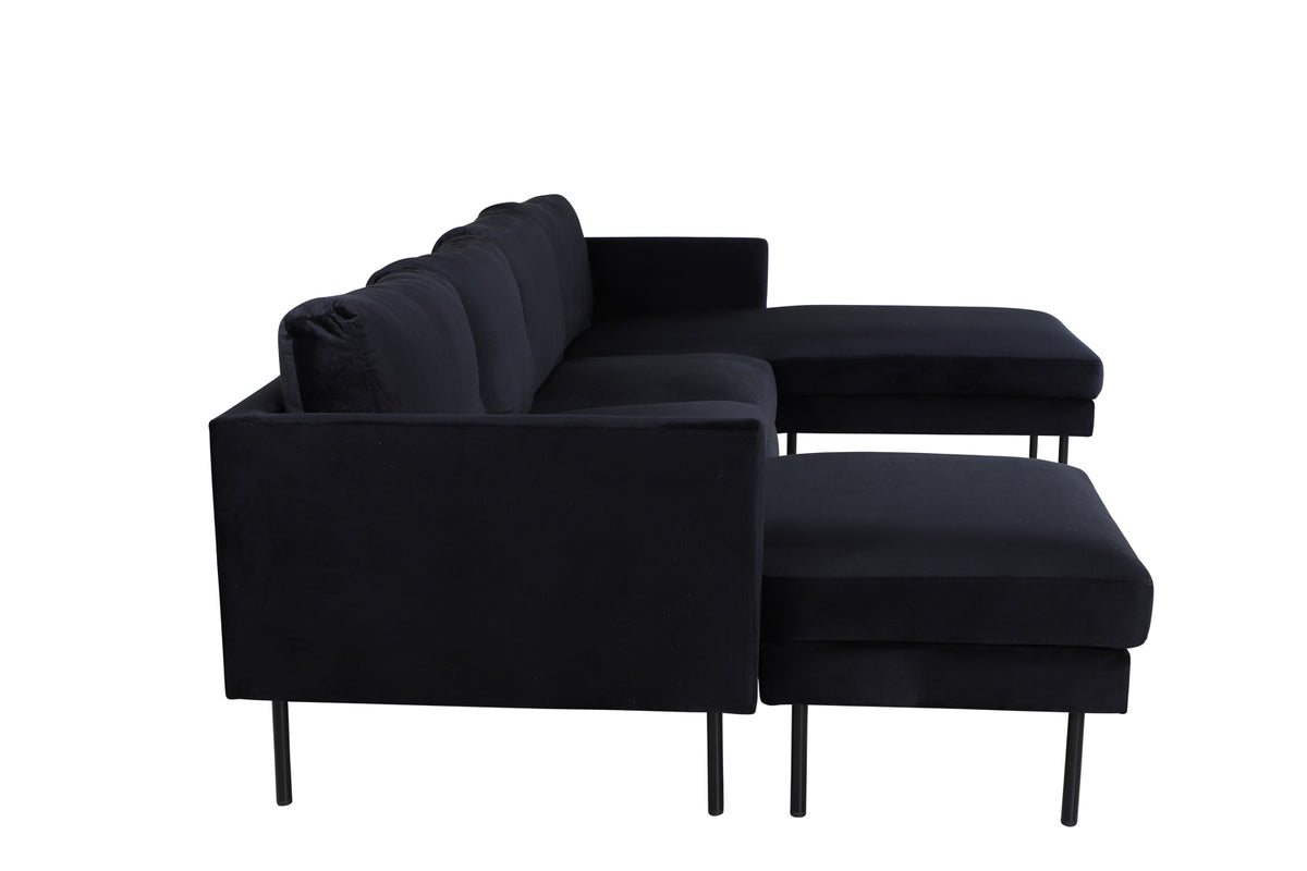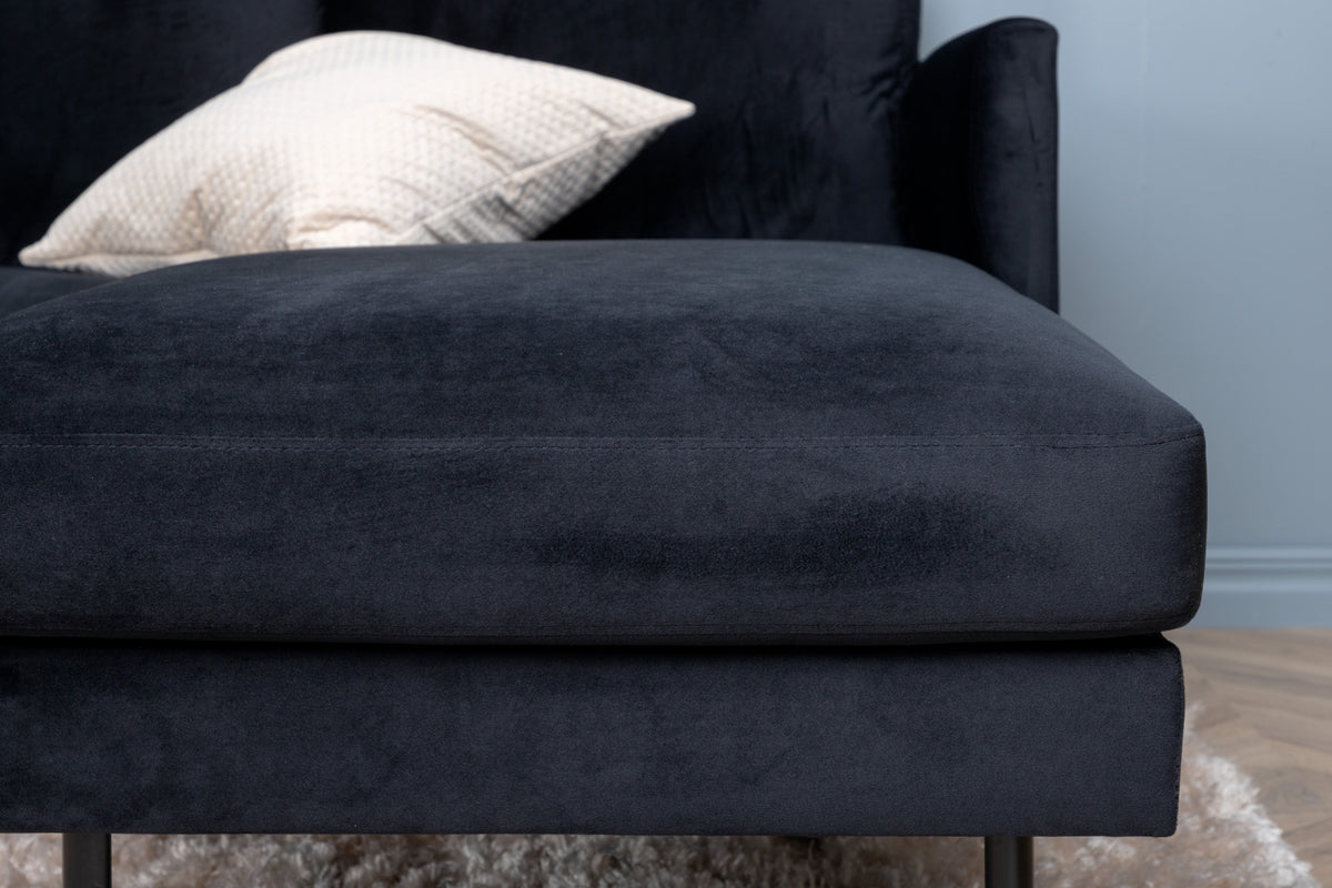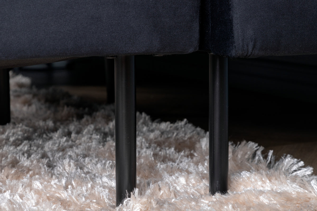 Divansoffa i serien Zoom utstrålar lyx och elegans - en riktig soffdröm för alla sammetsälskare! I kaxig svart kulör, skimrande sammetsklädsel och mjuk stoppning blir den här soffan snabbt en favorit efter en lång dag på jobbet. Lika bekväm som stilsäker har soffan en iögonfallande design med två divaner, raka nordiska former och generöst med sittplatser för hela familjen. De smala benen är i svart metall. Låt tiden här bli dagens höjdpunkt!