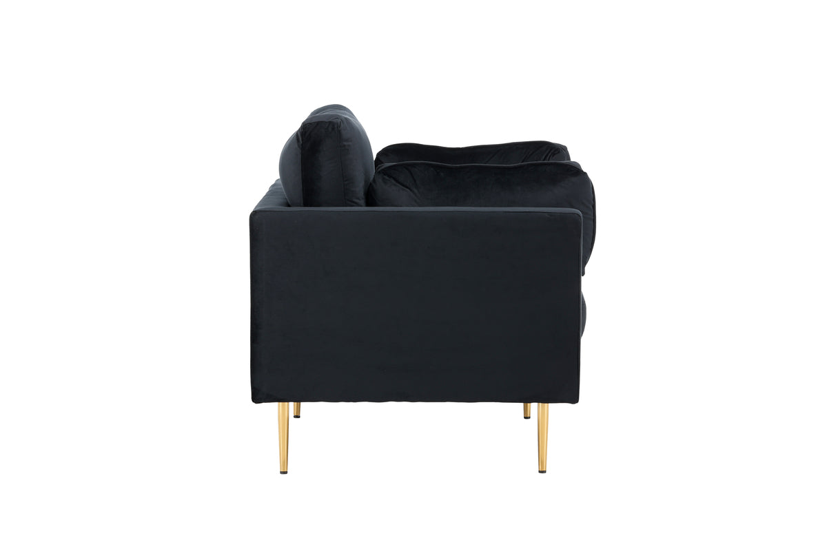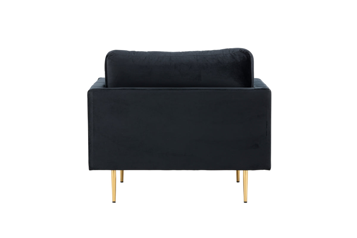 Boom är en modern fåtöljdröm med hög komfort och stilren design! Klädd i kaxigt svart sammetstyg ger fåtöljen ett elegant intryck och härligt lyster till vardagsrummet. Den raka men samtidigt mjuka designen och de smala, höga benen skapar en luftig och inbjudande känsla. En otroligt genomtänkt helhetsdesign helt enkelt med klädd baksida som möjliggör att placera fåtöljen mitt i rummet. Möblera ensam som stilikon eller i grupp tillsammans med vår 3-sitssoffa som också finns i serien Boom. Skötselråd: Sammet har en tendens till att få tryckmärken när luggen lägger sig ner. Avtrycken kan göra att tyget ser slitet ut, vilket här helt normalt för den här typen av material. Beroende på hur ljuset faller kan tyget skifta i flertalet olika nyanser.