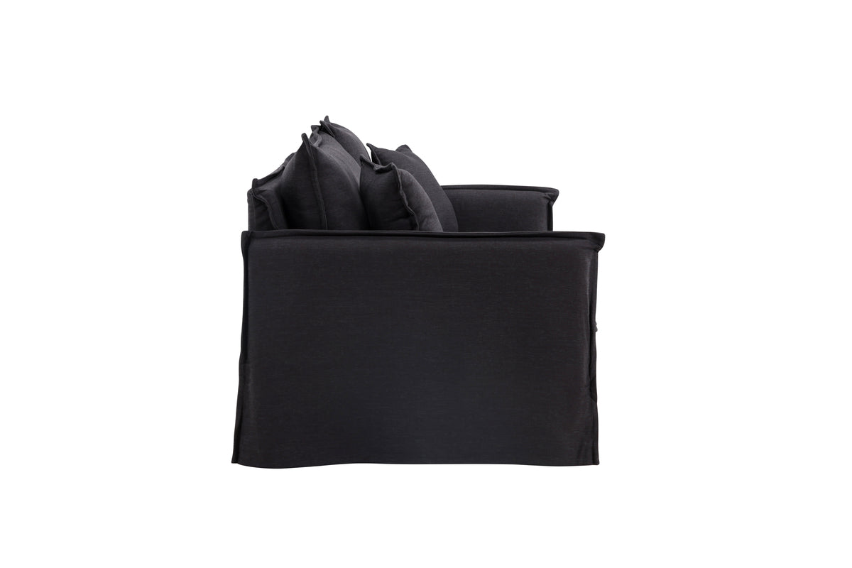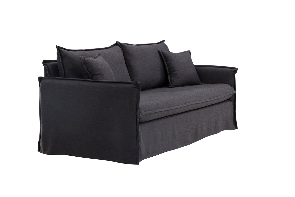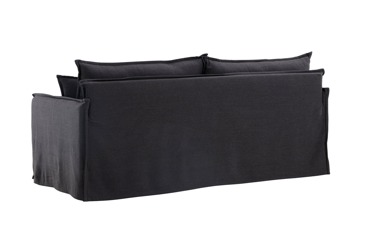 En soffdröm för alla moderna linneälskare just nu! Den här svarta soffan från serien Nova är en rymlig 3-sits soffa med stilren klädsel i svart linne med fokus på hög komfort. Följ våra tips för bästa skötsel så får du dessutom en soffa som står sig över tid. Designen är både iögonfallande och avslappnande med sin mjuka och inbjudande utsida som passar perfekt att sjunka ner i efter en lång dag. Klädseln har en kappa som döljer benen men som samtidigt underlättar för dammsugaren. Lika snygg som praktisk helt enkelt. Mys tillsammans med familjen eller bred ut dig ensam!