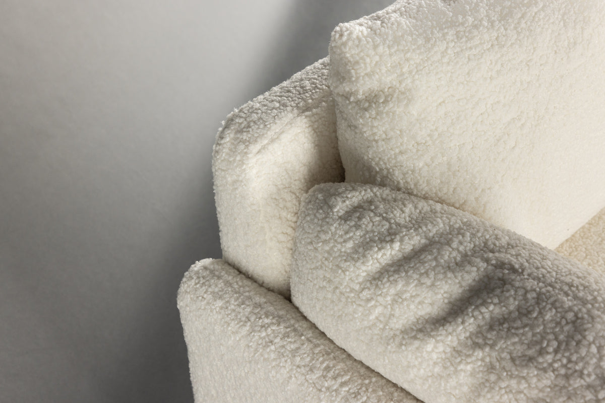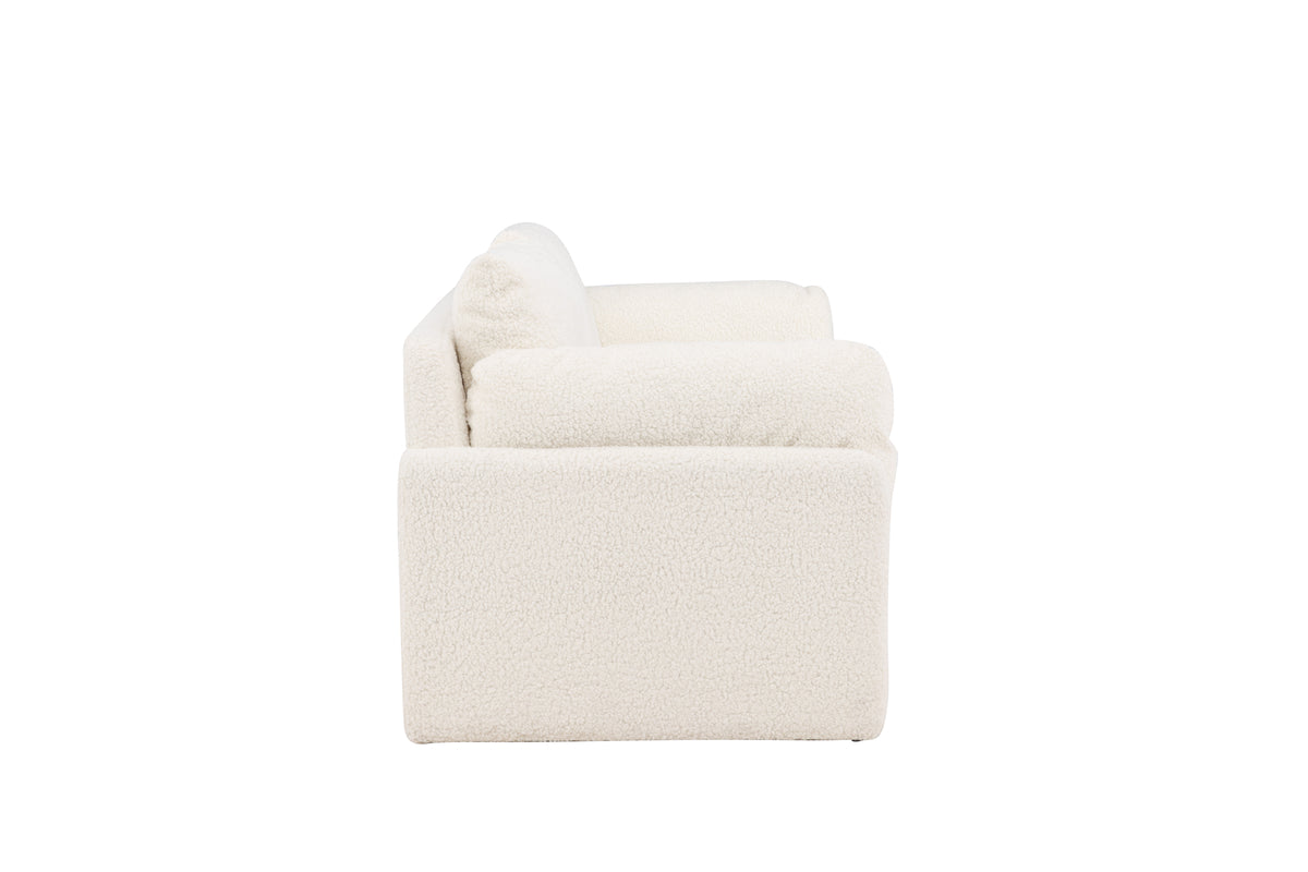 Häng med i trenderna med hjälp av vår underbara, vita teddysoffa från serien Vindel! Den här lyxiga designen, mjuka formerna och varma kulören ger dig en fräsch och stilren soffa som står sig över tid. Soffan har raka nordiska former och en helklädd design som verkligen bjuder in för mysiga stunder när du behöver lite avkoppling. Det vita teddytyget är inte så märkvärdigt att hålla fräscht som man kanske tror - följ våra skötselråd för bästa tipsen. Soffan har inga ben utan bärs istället upp av stommen för soffan, vilket ger ett genomtänkt blickfång. Möblera vardagsrummet charmigt och skapa en varm atmosfär i ditt hem. Här får du en soffdröm utan dess like!
