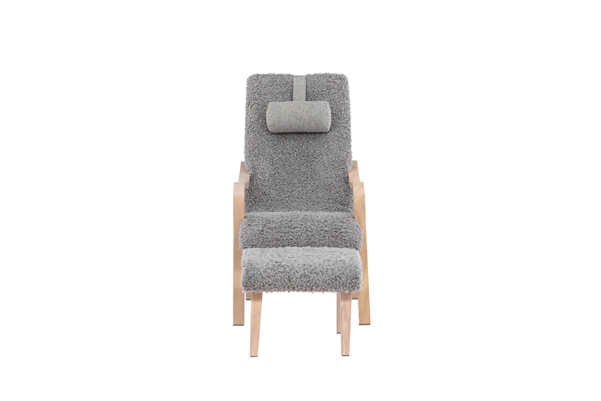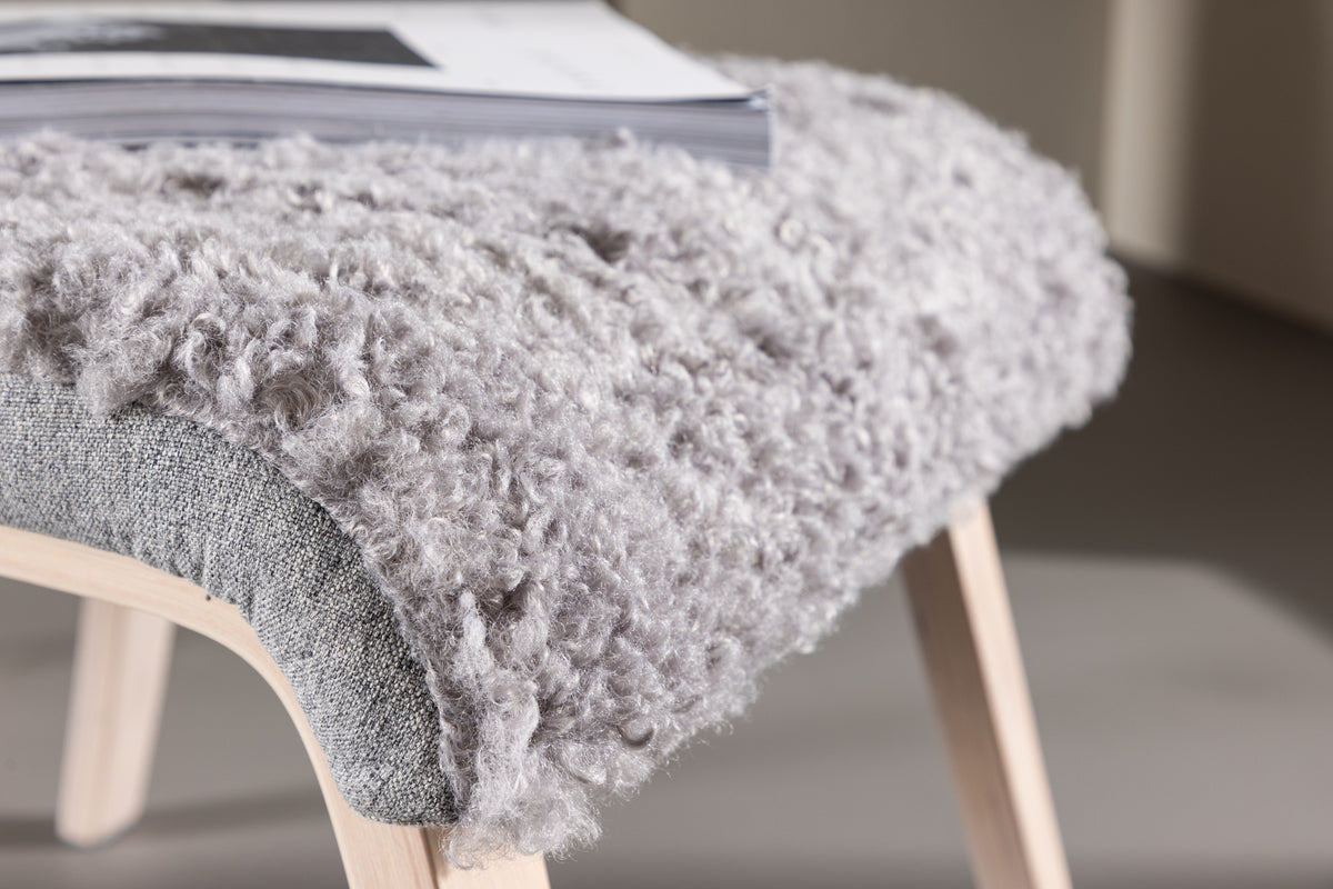 Fåtöljen Fårö personifierar den skandinaviska designens tidlösa elegans! Med en lockande estetik och lysande komfort är Fårö det ultimata valet för att förhöja din inredning med nordisk finess. Denna sofistikerade fåtölj kännetecknas av mjuka former och väldefinierade linjer i en solid träkonstruktion av ek-faner, vilket ger den en klassisk karaktär. Det ljusgrå tyget, som påminner om mjuk päls, avspeglar inte bara en känsla av raffinerad lyx utan lockar även till avkoppling och inbjudande värme. Tillsammans med fåtöljen får du en matchande fotpall och en tillhörande nackkudde för extra bekvämlighet och avslappning.