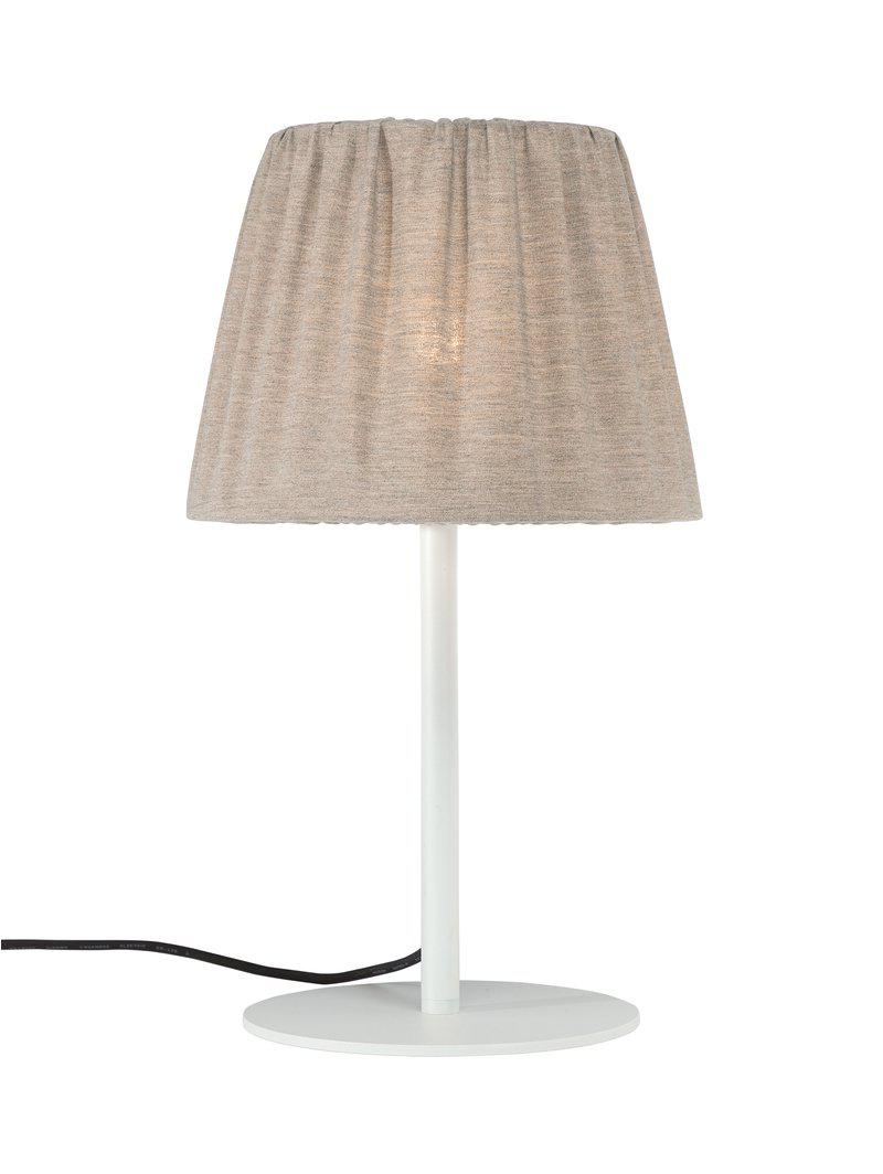 Agnar bordslampa för utomhusbruk. Lampskärmen är tillverkad i ett tyg av 100% Akryl Dralon som tål att vistas utomhus i alla väder. Tyget har en melange effekt och är oeko-tex 100 certifierat med hög ljushärdighet (5-7). Vatten- och smutsavvisande teflonbehandling. Lampskärmens ställning är galvaniserad för att inte rosta. Foten har en E27 lamphållare för ljuskälla, vi rekomenderar ljuskällan 1806404. Över ljuskällan och lamphållaren sitter ett vitt plastlock samt en packning som skyddar mot väta. Lampskärmen sätts fast i lampfoten med hjälp av ett specialfäste. Lampfot och lampskärm säljs endast som ett set om fot och skärm.