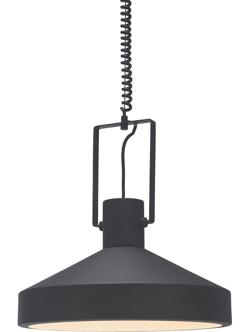 Taklampa Jojo i svart metall och matt yta. Lampan kommer med justerbar sladd där det är lätt att själv välja höjden efter behov. Diameter 40cm och höjd 26cm. Svart sladd 100-180 cm och svart takkopp. Denna armatur har fast installation, det finns en utgång från takkoppen för att göra en smidig förlängning av kabel vid behov. Passar till ljuskälla med E27 fattning, max 40watt. Det medföljer en diffuser som ger ett behagligt sken. Ljuskälla och takkontakt köpes separat.