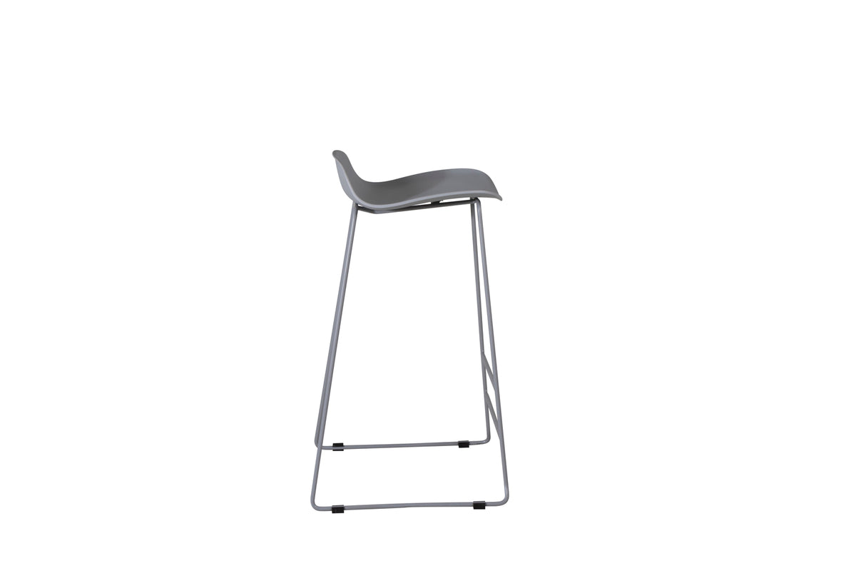 En stilren matstol i minimalistisk skandinavisk design från serien Wave kommer garanterat göra succé vid barskänken! Den här barstolen kommer i en behaglig grå kulör, med grå pulverlackerad metallställning, integrerat fotstöd för extra sittkomfort och låg rygg och sits i grå helgjuten plast. Lättare montering krävs.