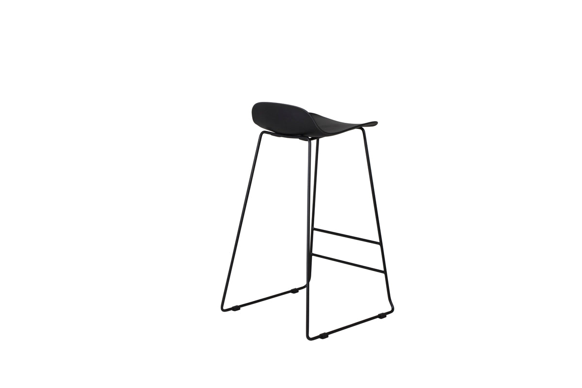 En stilren matstol i minimalistisk skandinavisk design från serien Wave kommer garanterat göra succé vid barskänken! Den här barstolen kommer i en tidlös svart kulör, med svart pulverlackerad metallställning, integrerat fotstöd för extra sittkomfort och låg rygg och sits i svart helgjuten plast. Lättare montering krävs.