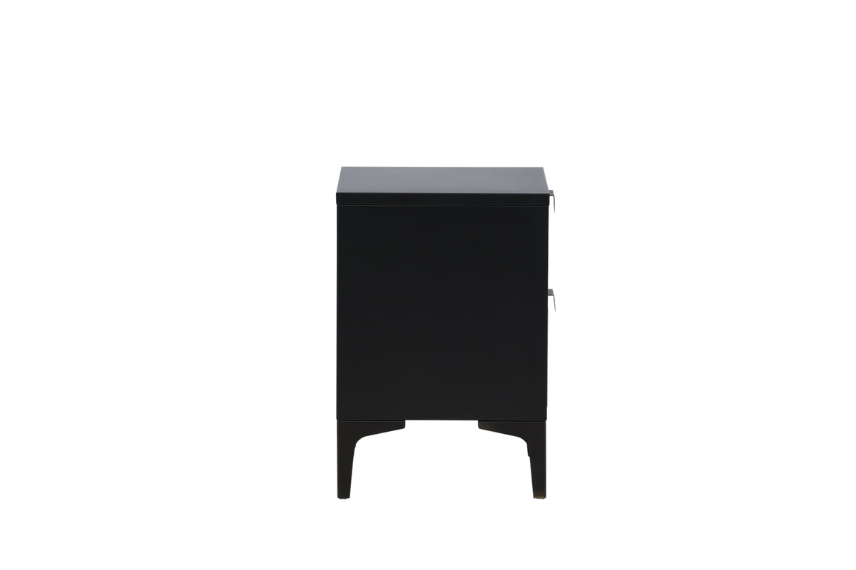 Sängbord i serien Piring är perfekt som förvaringslösning! Det kvadratiska sidobordet i svart stål har två lådor för dold förvaring och stilren ovansida med lagom plats för en sänglampa, en bra bok och eventuell prydlig inredningsdetalj för modern look. Sängbordet lyfts upp av fyra ben som ger en luftigare känsla och den raka designen gör bordet lättplacerat och enkel att matcha. Se våra bilder för inspiration!