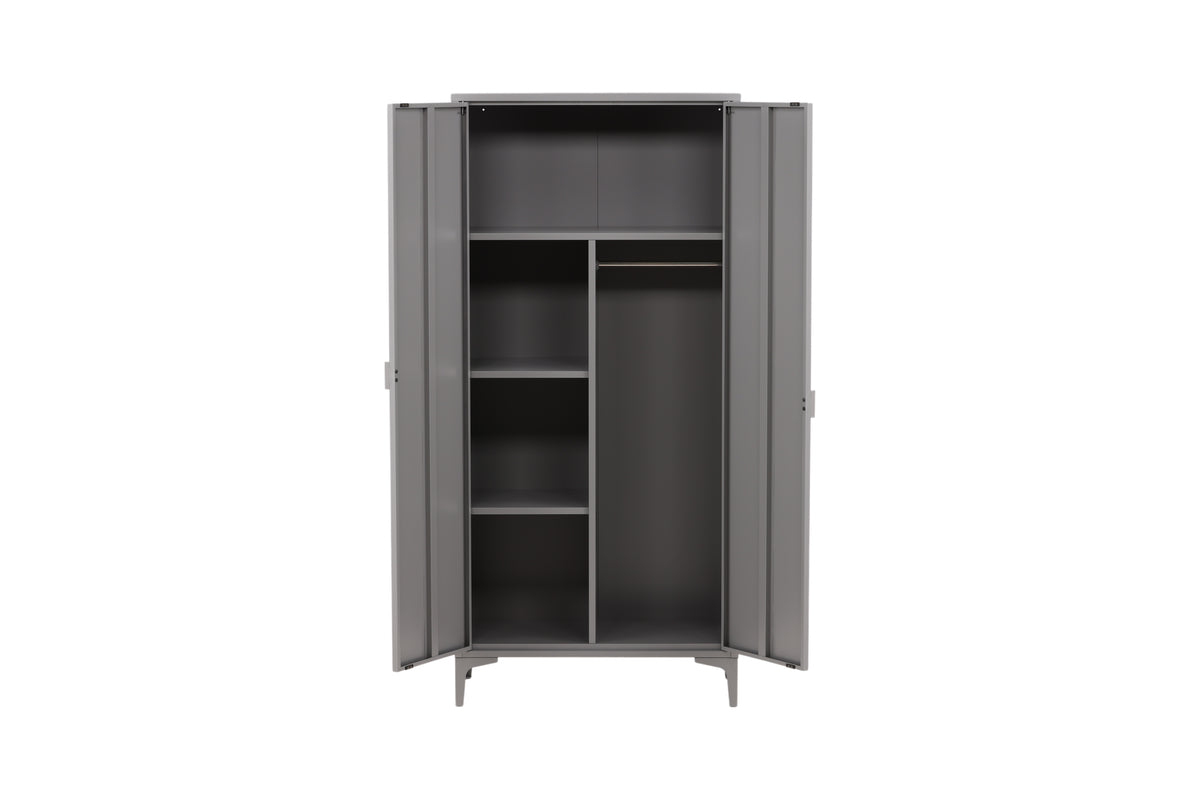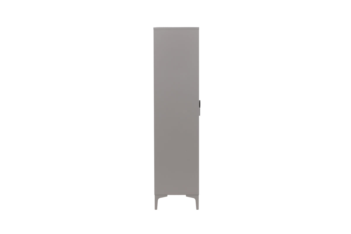 Garderoben från serien Piring är det perfekta tillskottet till sovrummet! Den här höga garderoben i grått stål har två dörrar som öppnar upp till fyra hyllplan och rymmer även plats för hängare så att de nystrukna kläderna slipper skrynklas. Piring lyfts upp av fyra nätta ben som skapar ett luftigt intryck och underlättar också för dammsugaren. Investera i mer förvaringsyta till dig själv och få en snygg möbel i ditt hem på köpet!