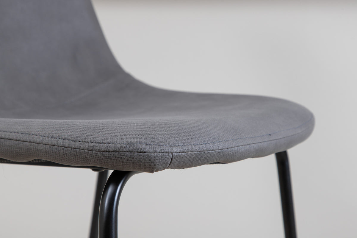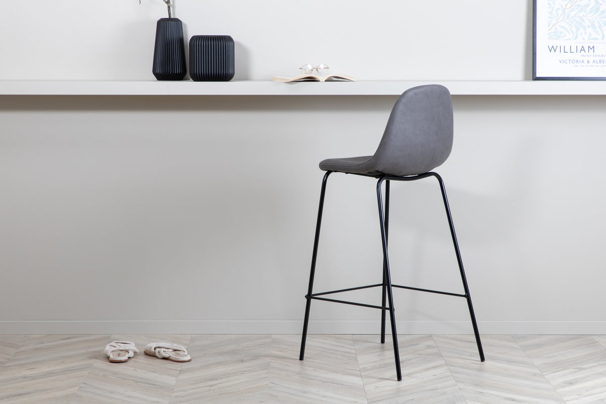 Skapa ett modernt blickfång som inger en lyxig känsla till hemmet med hjälp av barstolar från serien Polar! Designen är genomtänkt med en helklädd, kaxig grå stol med rundad rygg och sits i stoppad mikrofiber och polyesterlinne samt smal benställning i svart järn med integrerat fotstöd för extra komfort. Lättare montering krävs.