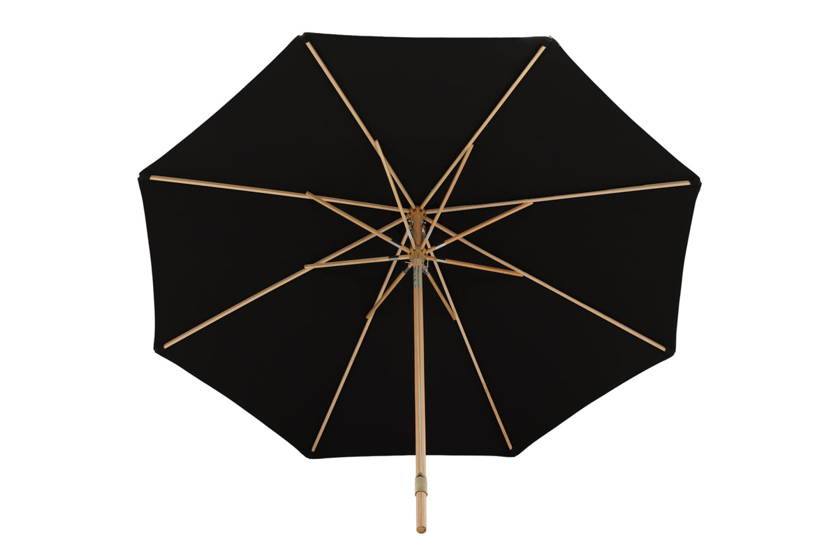 Bjud in familj och vänner till en härlig lunch eller lägg dig och och njut av det fina vädret i skuggan under NYPO - det perfekta parasollet för utemiljön. Parasollet är enkelt att fälla ut och dra ihop, och med det svarta tyget mot ställningen i trä skapas ett modernt och tidlöst uttryck som passar alla hem och stilar. Skötselråd: För våra parasoll rekommenderar vi att man använder sig av parasollskydd. Dra på överdraget när parasollet inte används, det mot sol och minskar därmed risken för solblekning. Överdraget används när parasollduken är torr, annars finns det risk för mögel. Lämna aldrig ett parasoll uppfält när det inte används. Hängparasoll är många gånger känsligare för vindar än vad traditionella parasoll (med pelaren mitt under duken) är.