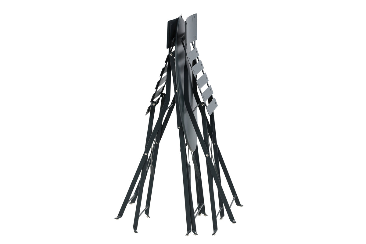 Ett snyggt och smidigt bistroset i mörkgrått som enkelt går att fälla ihop. Både snygg och praktisk så att du får plats över till annat när möblerna inte används. Ta en kopp kaffe och njut här från vår till höst!