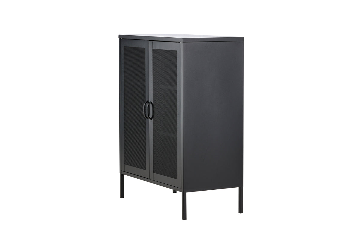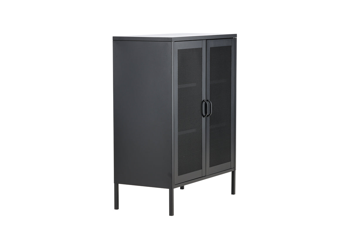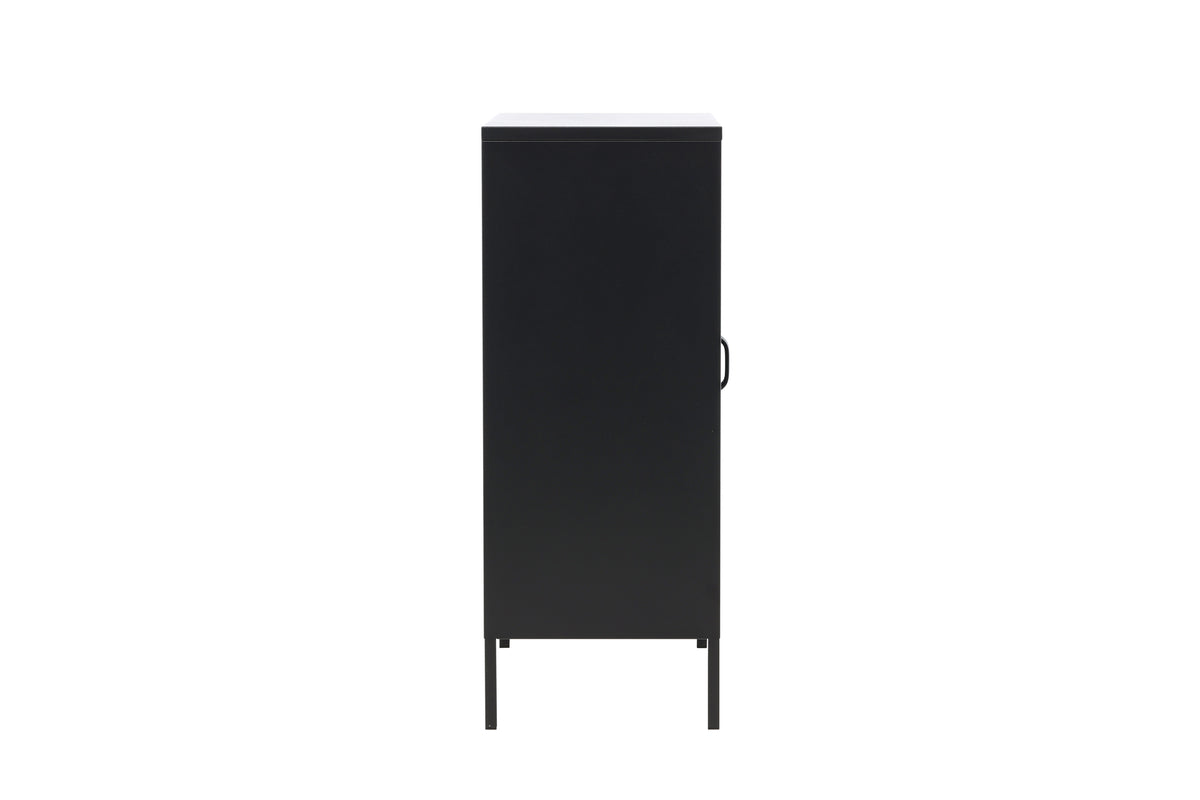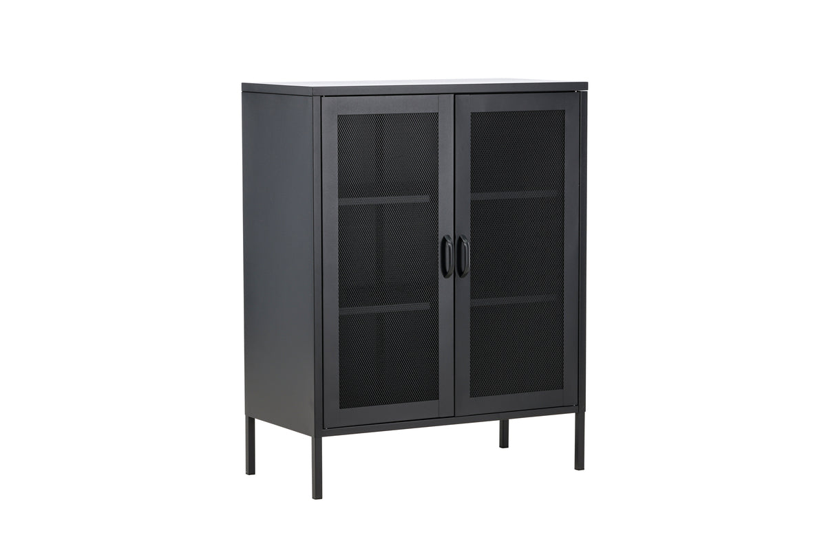 Misha är ett stilrent skåp tillverkat helt i svart stål – ett robust och hållbart material som ger en tydlig karaktär till rummet. Designen är stram men uttrycksfull, perfekt för dig som gillar funktionell form med ett industriellt uttryck. Det som särskiljer Misha är dörrarna: tillverkade i finmaskigt perforerat stål som både döljer och visar. Det transparenta nätmönstret skapar ett subtilt spel mellan ljus och skuggor, och låter konturerna av innehållet anas utan att exponeras helt. En smart lösning som kombinerar estetik med praktisk ventilation. Med sina rena linjer och genomtänkta detaljer passar Misha lika bra i vardagsrummet som i hallen, arbetsrummet eller köket.
