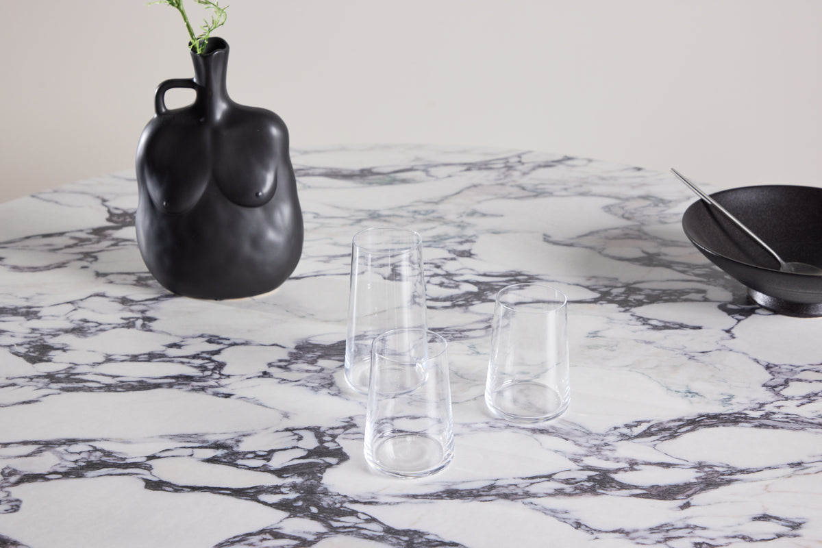 Upptäck Tekla, ett matbord som vågar kombinera material och uttryck för att skapa något helt eget. Med sitt karaktärsfulla bordsben i MDF och en elegant bordsskiva i calacatta-look, blir Tekla ett spännande och unikt inslag i din inredning. Den runda formen på 120cm gör bordet perfekt för mindre matplatser, där det skapar en inbjudande känsla och en naturlig samlingspunkt. Tekla passar lika bra i det moderna hemmet som i mer kreativa eller personliga miljöer.