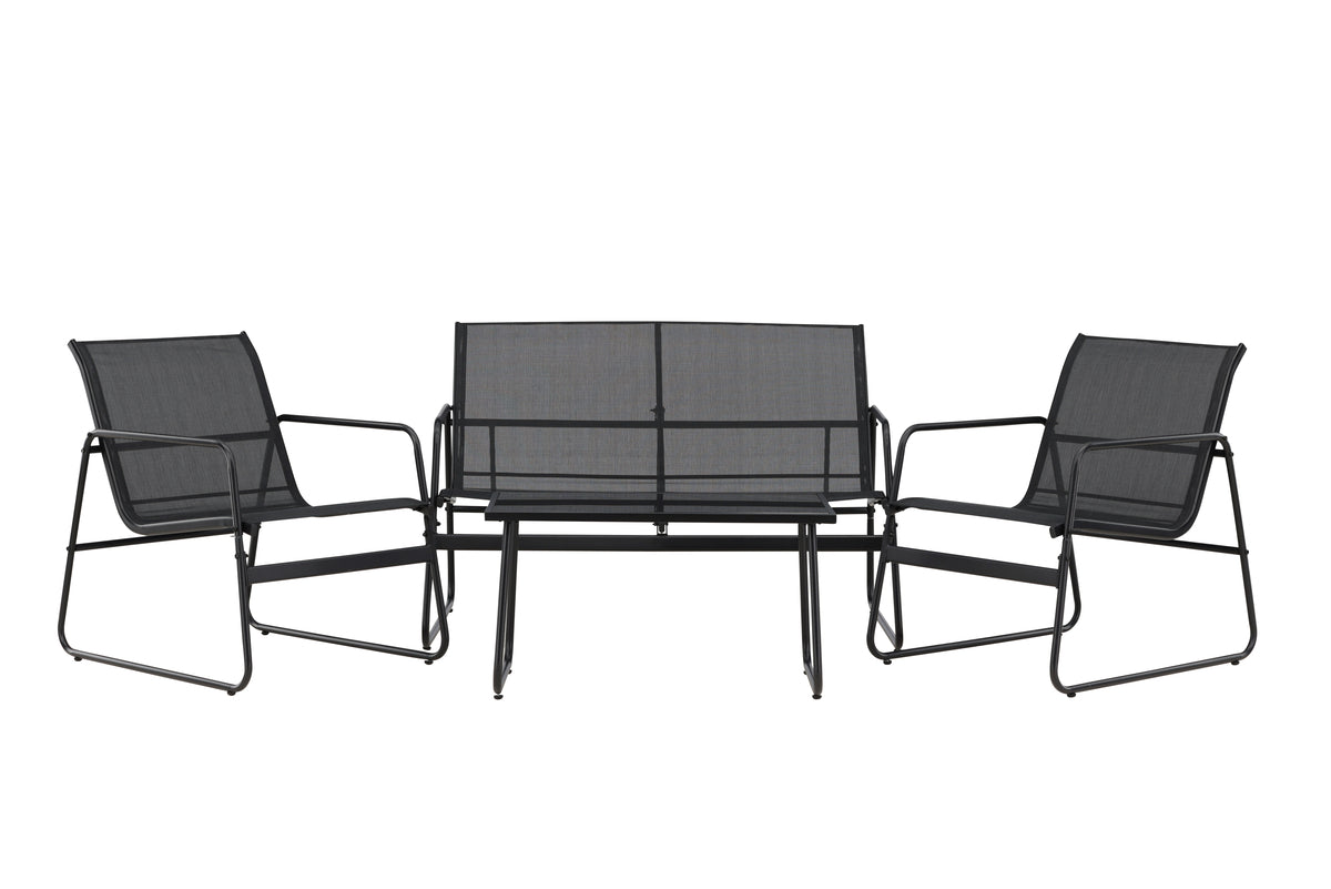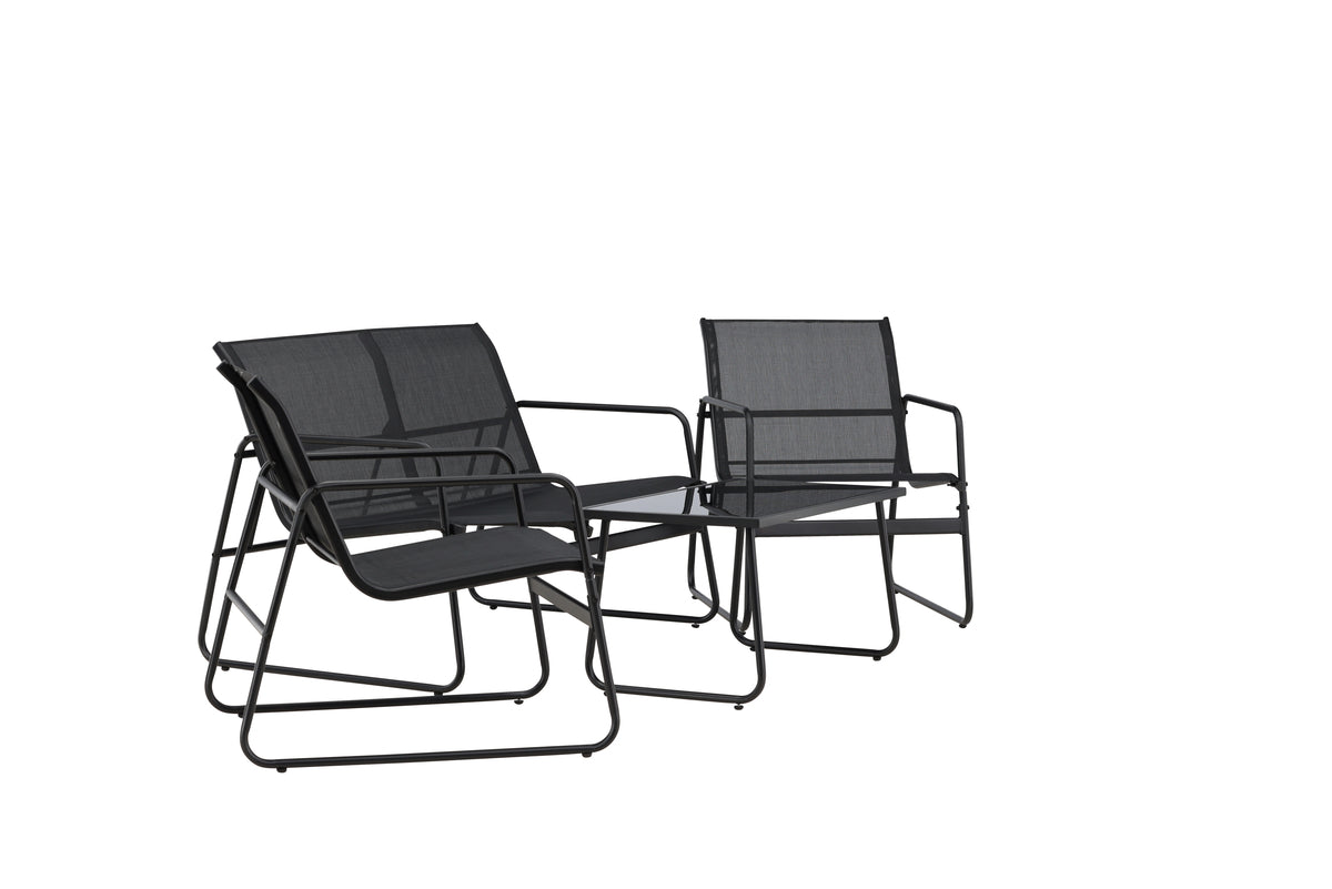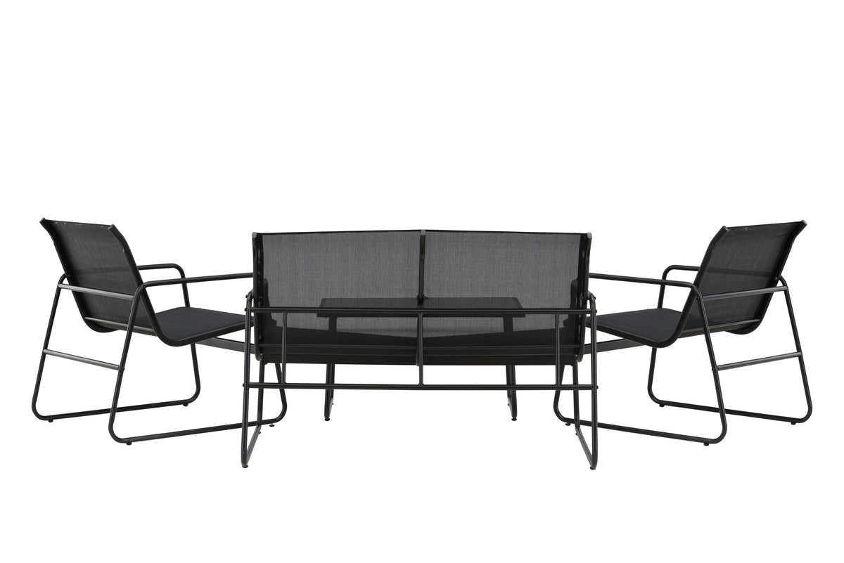 Uppgradera din uteplats med en stilfull och inbjudande loungegrupp Scopello, designad för att ge både komfort och elegans till dina utomhusmiljöer. Denna exklusiva sittgrupp inkluderar en rymlig soffa, två bekväma fåtöljer och ett matchande bord – perfekt för att skapa den ultimata platsen för avkoppling och umgänge. Sittmöblerna har en stabil ram i stål och en sits i textilene som ger en omslutande komfort och samtidigt är mycket tåliga för utomhusbruk. Det medföljande bordet, med en elegant stålkonstruktion och en stilren glasskiva, fulländar setet och skapar en sofistikerad atmosfär som inbjuder till att njuta av sommaren fullt ut. Med sin djupa svarta färg och moderna design smälter denna loungegrupp in harmoniskt i alla miljöer – det är loungen som gör varje stund utomhus minnesvärd.