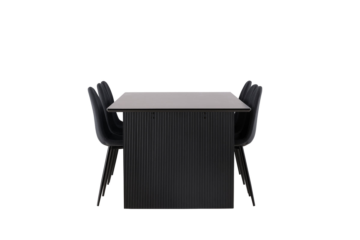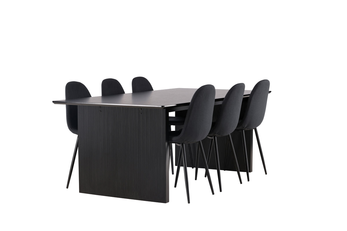 Polar & Vail Matstol 2-pack Svart + Rektangulära Matbord 200 x 100 Svart
