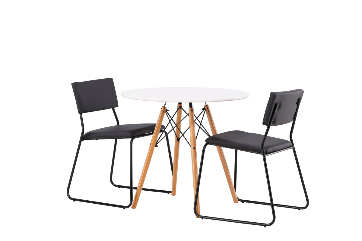 Kenth & Danburi Matstol 2-pack Svart + Runda Matbord ⌀60 Vit