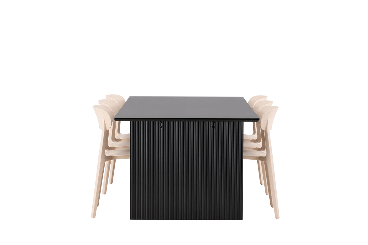 Åstol & Vail Matstol 2-pack Beige + Rektangulära Matbord 200 x 100 Svart