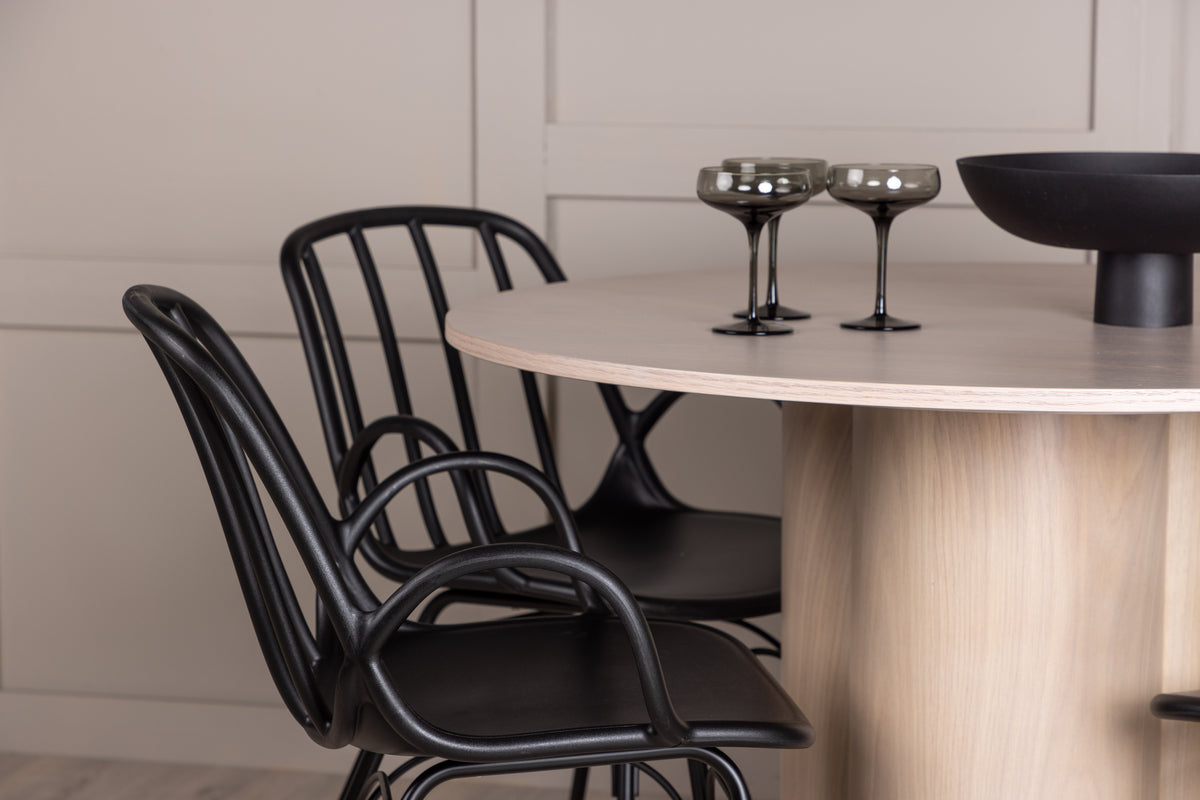Dyrön & Olivia Matstol 2-pack Svart + Runda Matbord ⌀110 Vitputsad