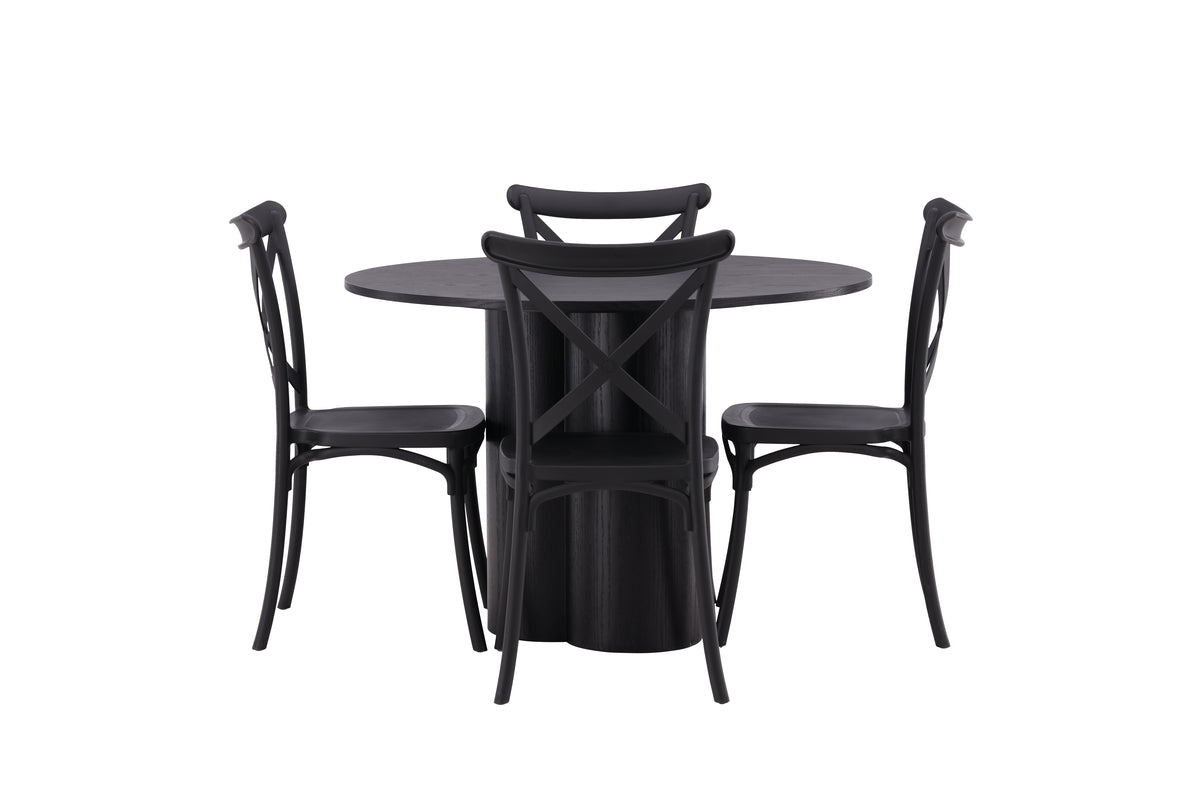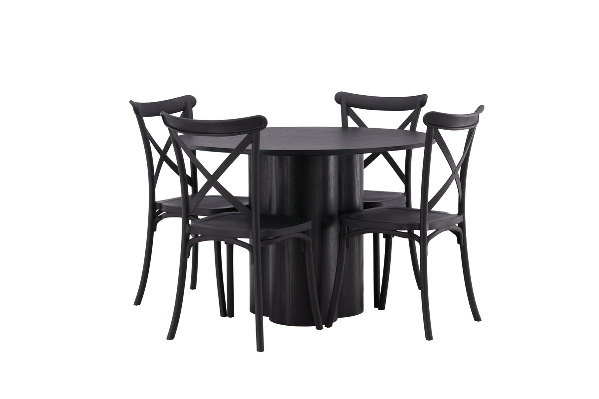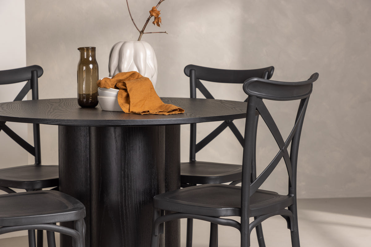 Crosett & Olivia Matstol 2-pack Svart + Runda Matbord ⌀110 Svart