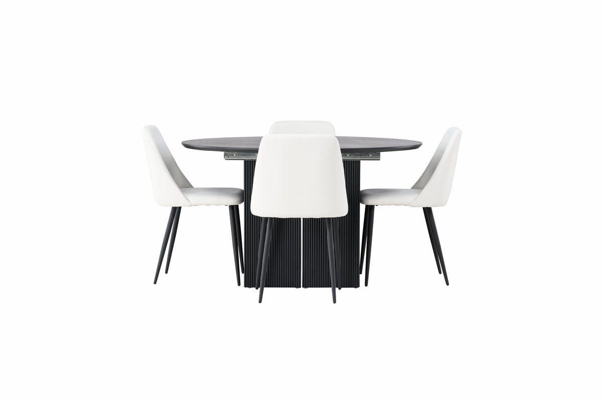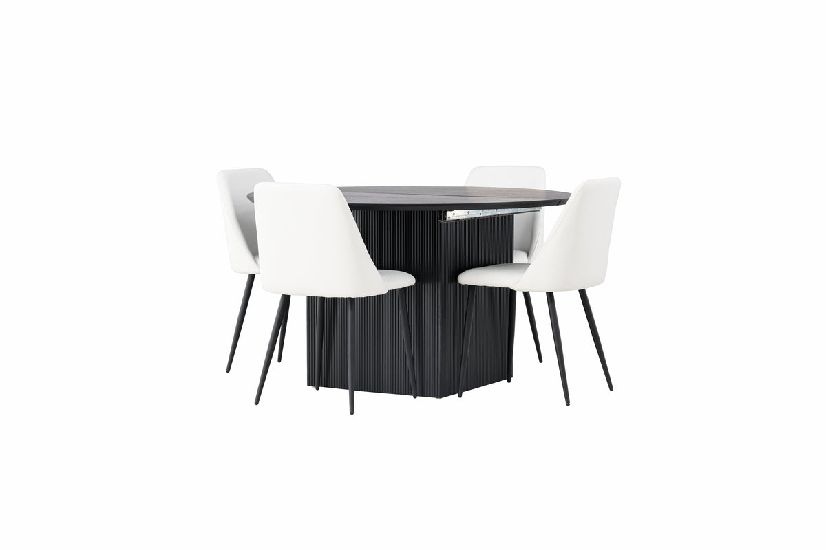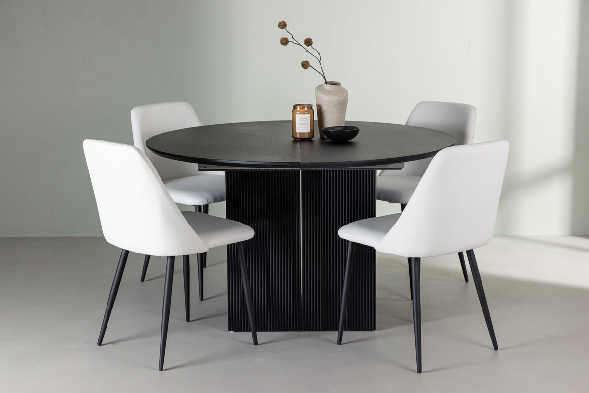 Ge ditt hem en touch av elegans och funktionalitet med den här snygga och smarta matgruppen som kombinerar matbord Matilda och Night-stolarna.