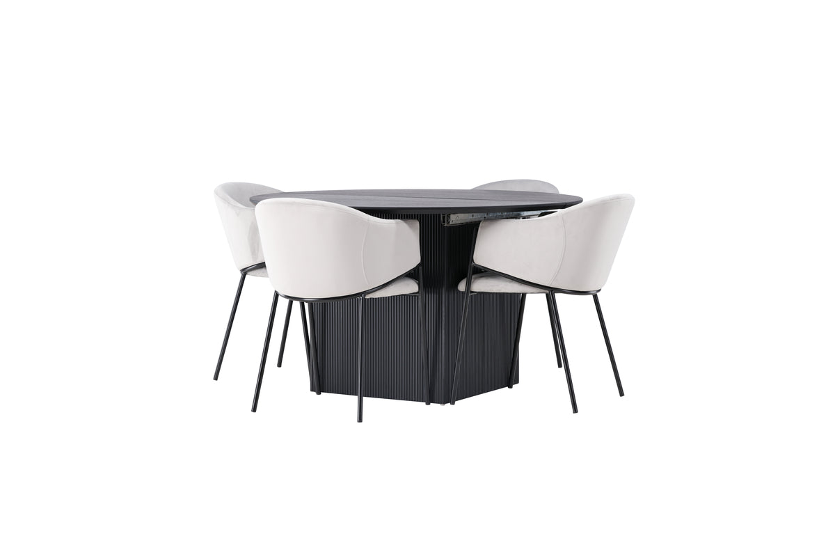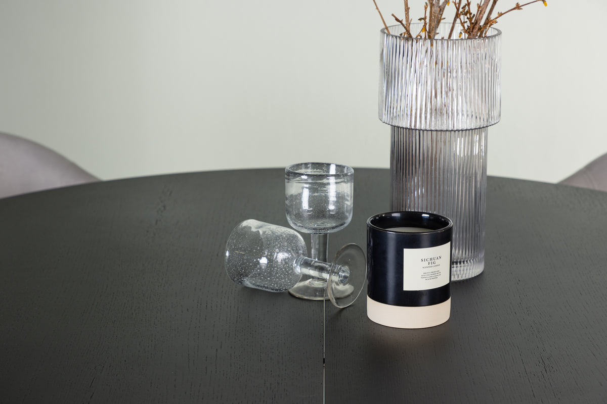 Vårt runda matbord Matilda omvandlas snabbt till ett ovalt bord med hjälp av sin förlängningsbara funktion. Med en rund toppskiva i svart MDF med faner och robusta, klossformade ben ger Matilda dessutom också en modern och elegant touch till ditt hem. Bordets mått i diameter: 130cm.