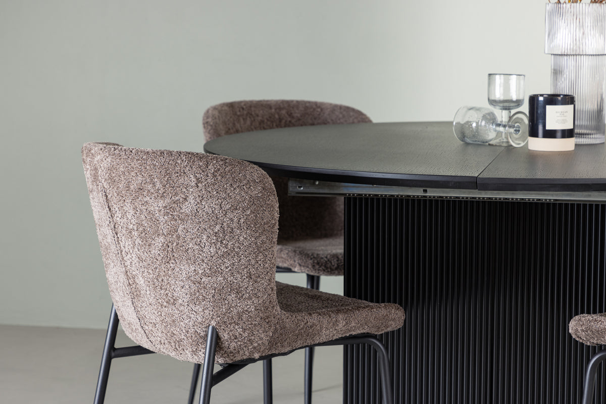 Tillsammans med vårt förlängningsbara matbord Matilda kommer våra stilrena matstolar från Modesto-serien. Denna skandinaviskt inspirerade matstol i mjukt, grått bouclétyg och svarta ben i metall ger en inbjudande atmosfär till hemmets hjärta. Den lätt rundade ryggen och den stoppade sittdynan erbjuder fantastisk komfort, vilket gör att du kan njuta av långa och trevliga måltider med vänner och familj! Vad mer kan man önska? Här får du en smart matgrupp som anpassar sig till dina behov och önskemål!