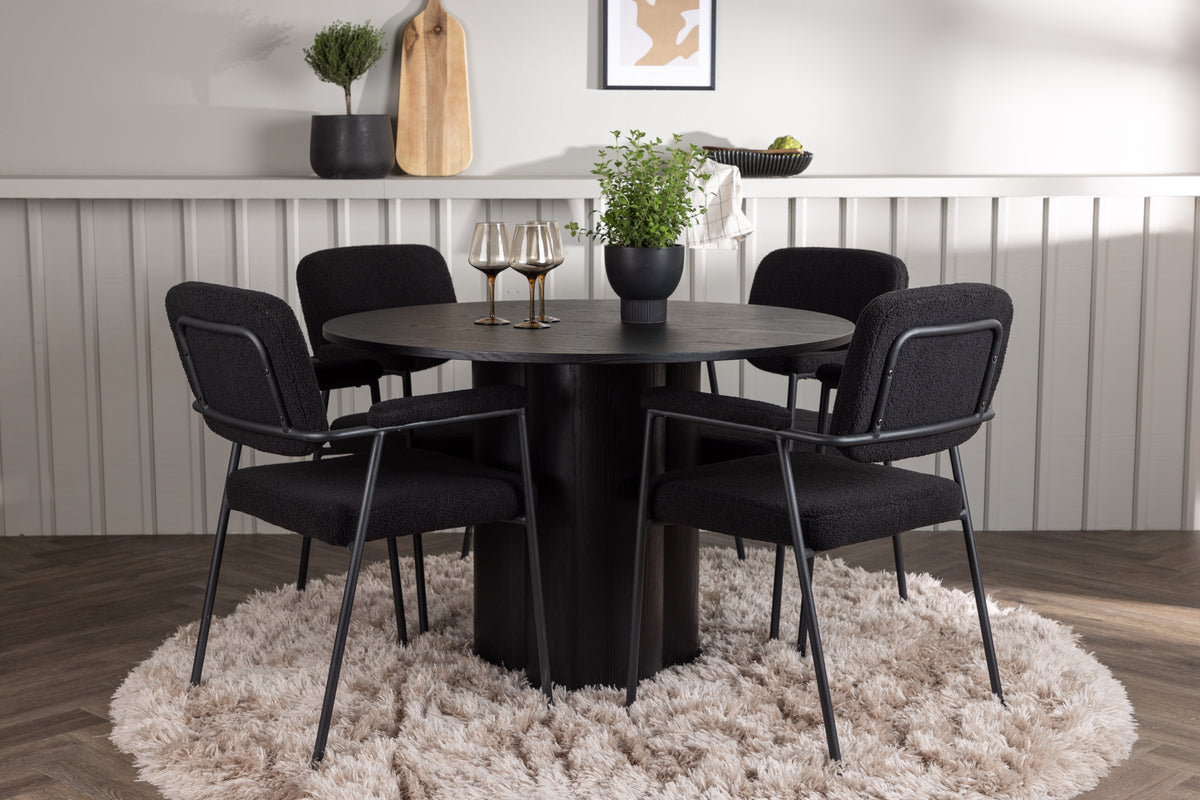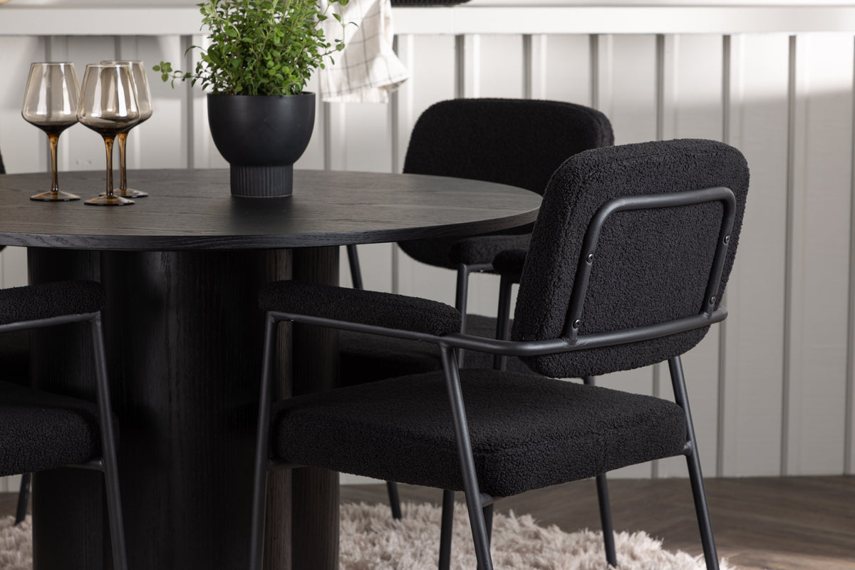Här tillsammans med våra otroliga matstolar från serien Yesterday. Dessa underbara stolar i Skandinavisk design kommer att charma dig med sin helklädda sits i svart bouclétyg. Den mjuka, stoppade sitsen bjuder in till långa och trivsamma middagsstunder och stolsbenen i smal, svart metall, kompletteras med integrerade armstöd för extra bekvämlighet och stil.