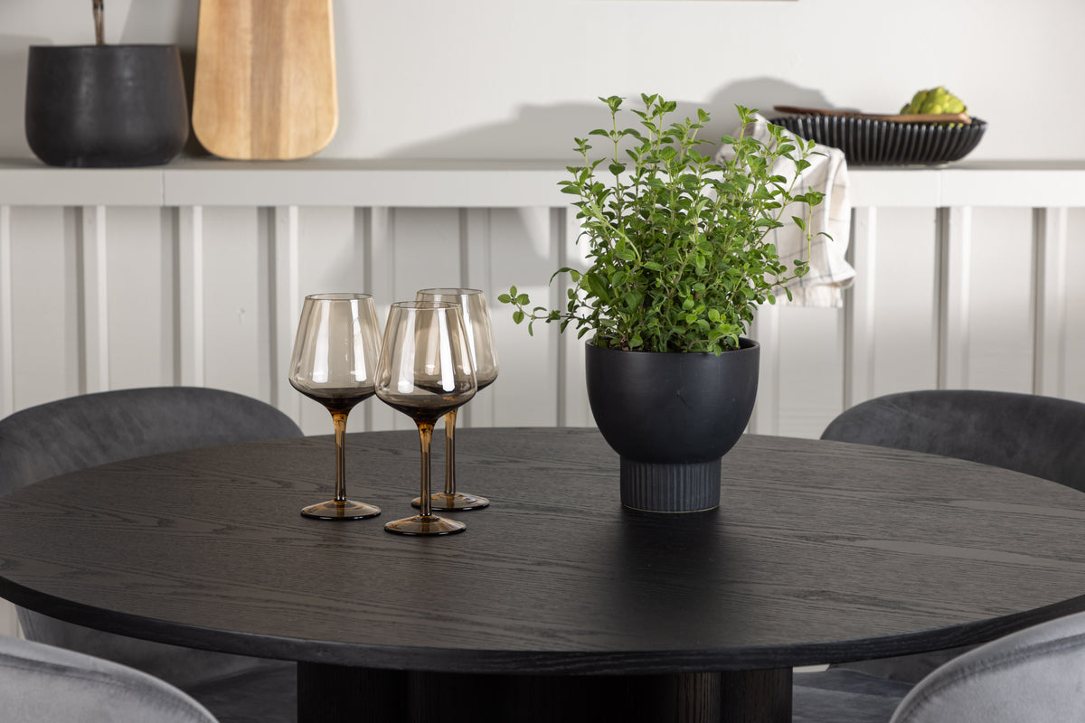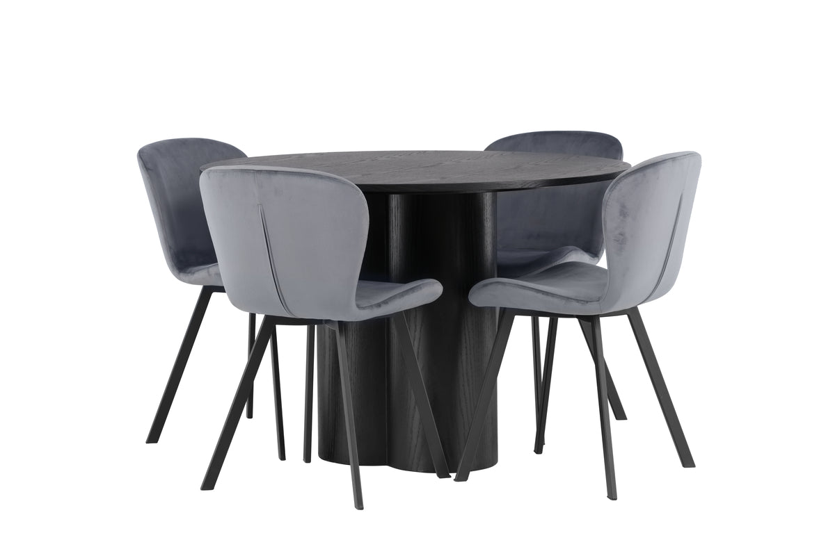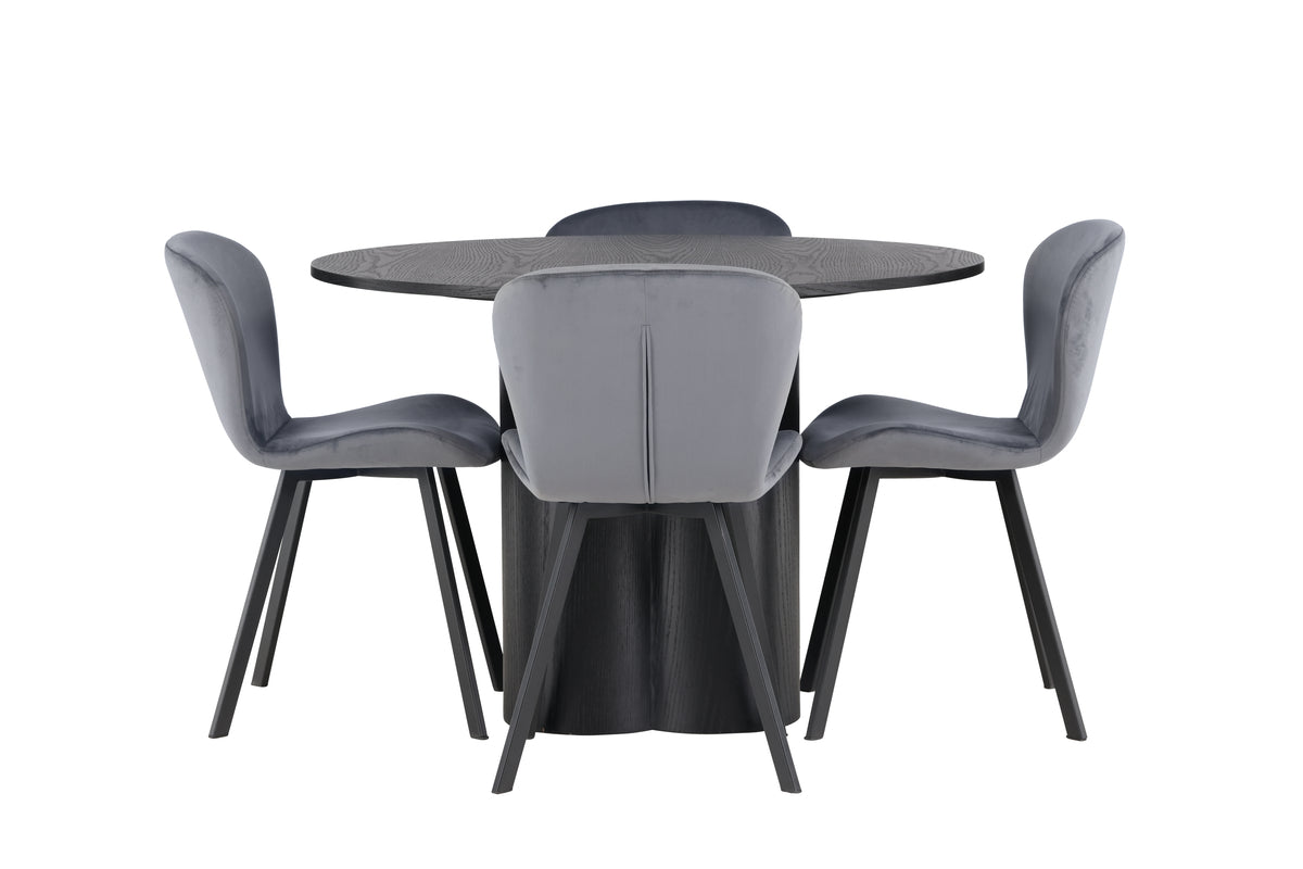 Olivia & Lilja Runda Matbord ⌀110 Svart + Matstol 2-pack Grå