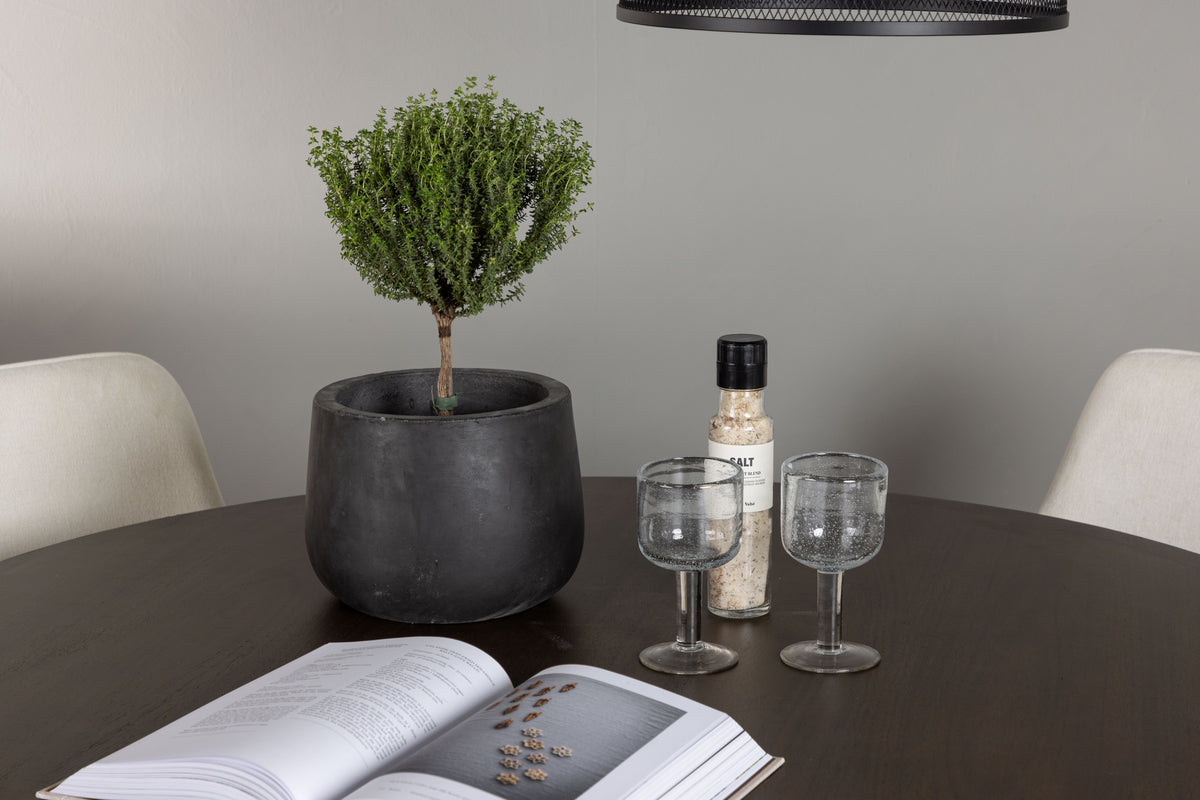 Vårt runda matbord Kaseidon i mörkbrunt trä erbjuder både form och funktion. Med sin runda MDF-bordsskiva blir det en naturlig samlingsplats för familj och vänner där ingen hamnar på kanten. Dess lätt utsvängda bordsben i gummiträ ger bordet en stadig look som står sig över tid. Bordet har en modern valnötsfärgad kulör som ger en varm och inbjudande känsla, vilket skapar en harmonisk atmosfär i ditt matrum. Bordets mått: 100cm.
